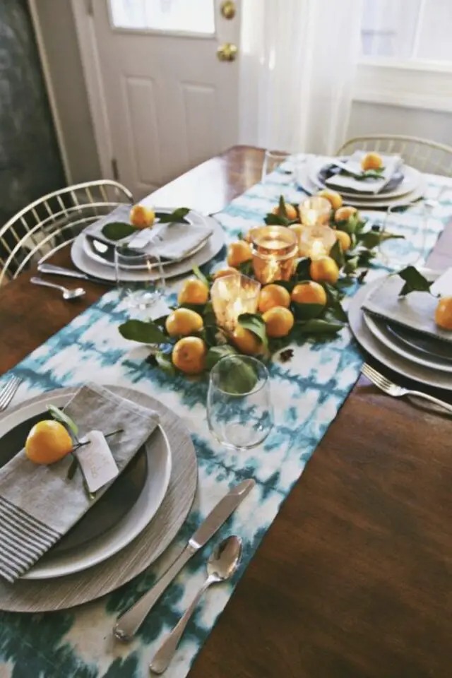Un chemin de table avec un motif d'agrume fait maison