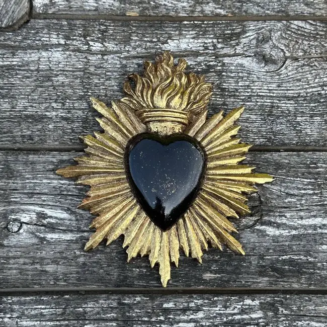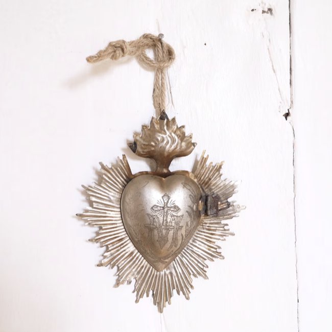 Vous le remarquerez probablement dans ma sélection d'ex-voto décoratifs que ce sont essentiellement des coeurs avec une croix ou encore une flamme. C'est un symbole catholique qui renvoie au Sacré-Coeur - coeur de Jésus, symbole de l'amour divin.