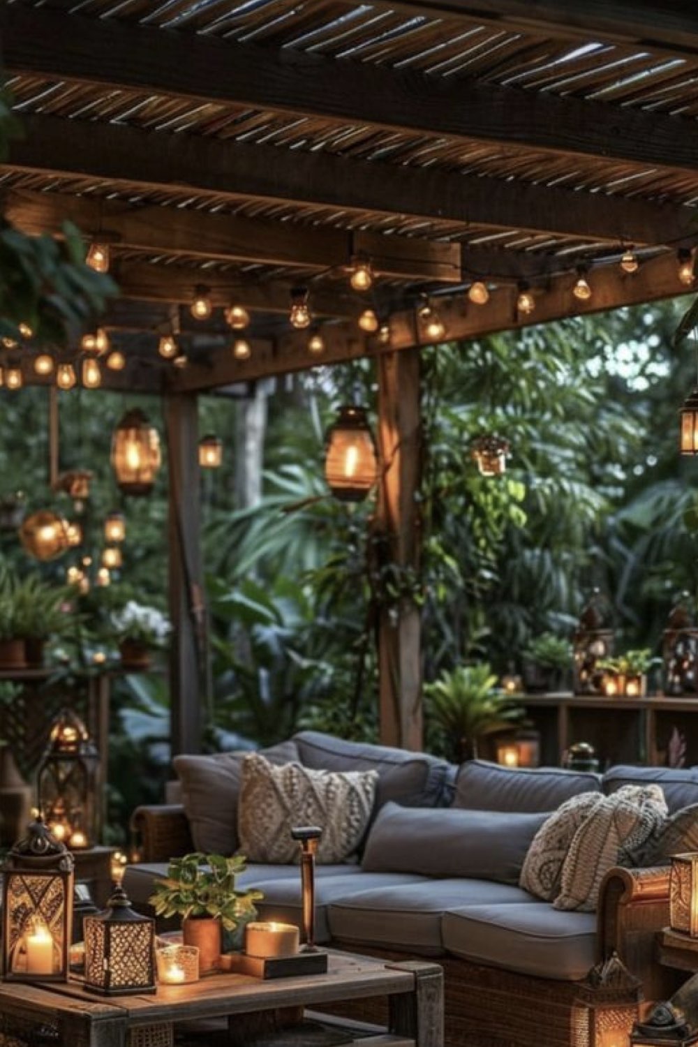 - des lanternes en métal ajouré ou en rotin à proximité du salon de jardin,