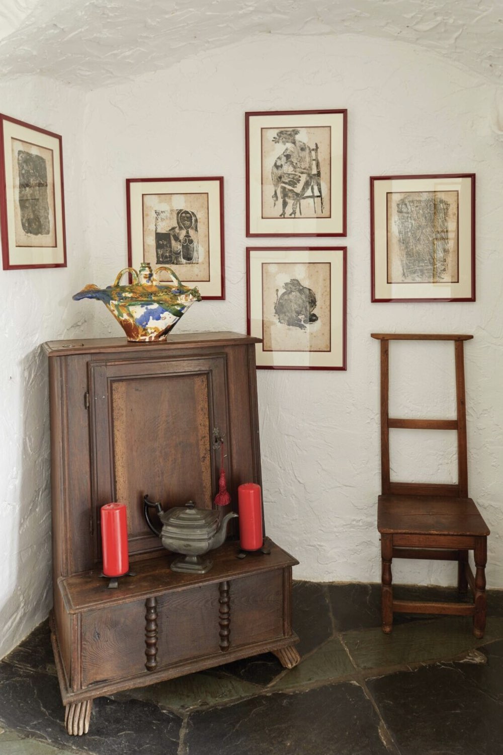 - Des artistes ont contribué à la décoration de la maison: peinture murale, carrelage, porte sculptée...