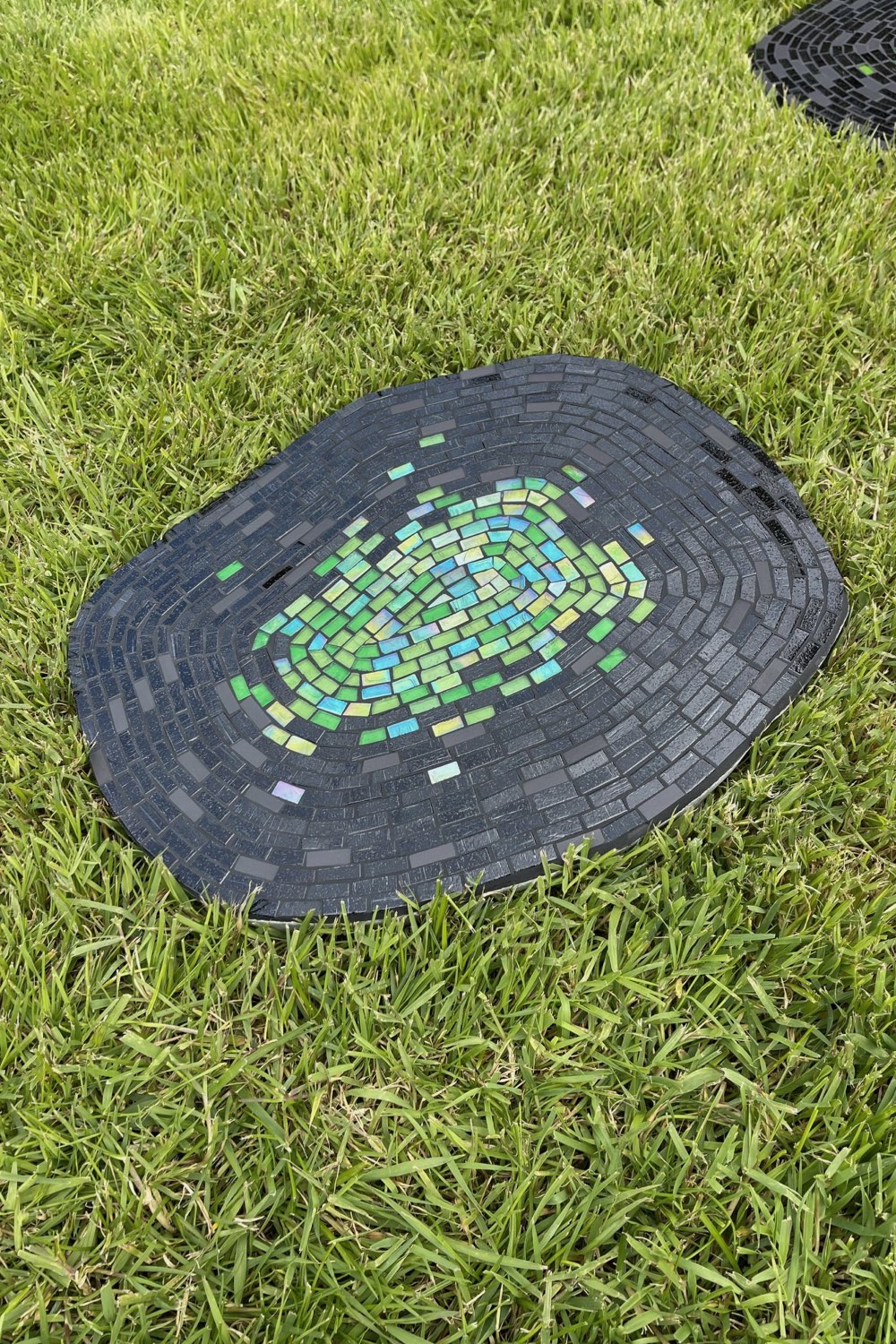 Chez un particulier, je peux intervenir sur un pan de mur, une salle de bain, une crédence de cuisine, un pas de porte voire la façade en personnalisant une plaque avec le numéro de rue ou le nom de la maison. Le jardin est aussi un très bon terrain de jeux avec les pas japonais, les dalles, et pourquoi une table.