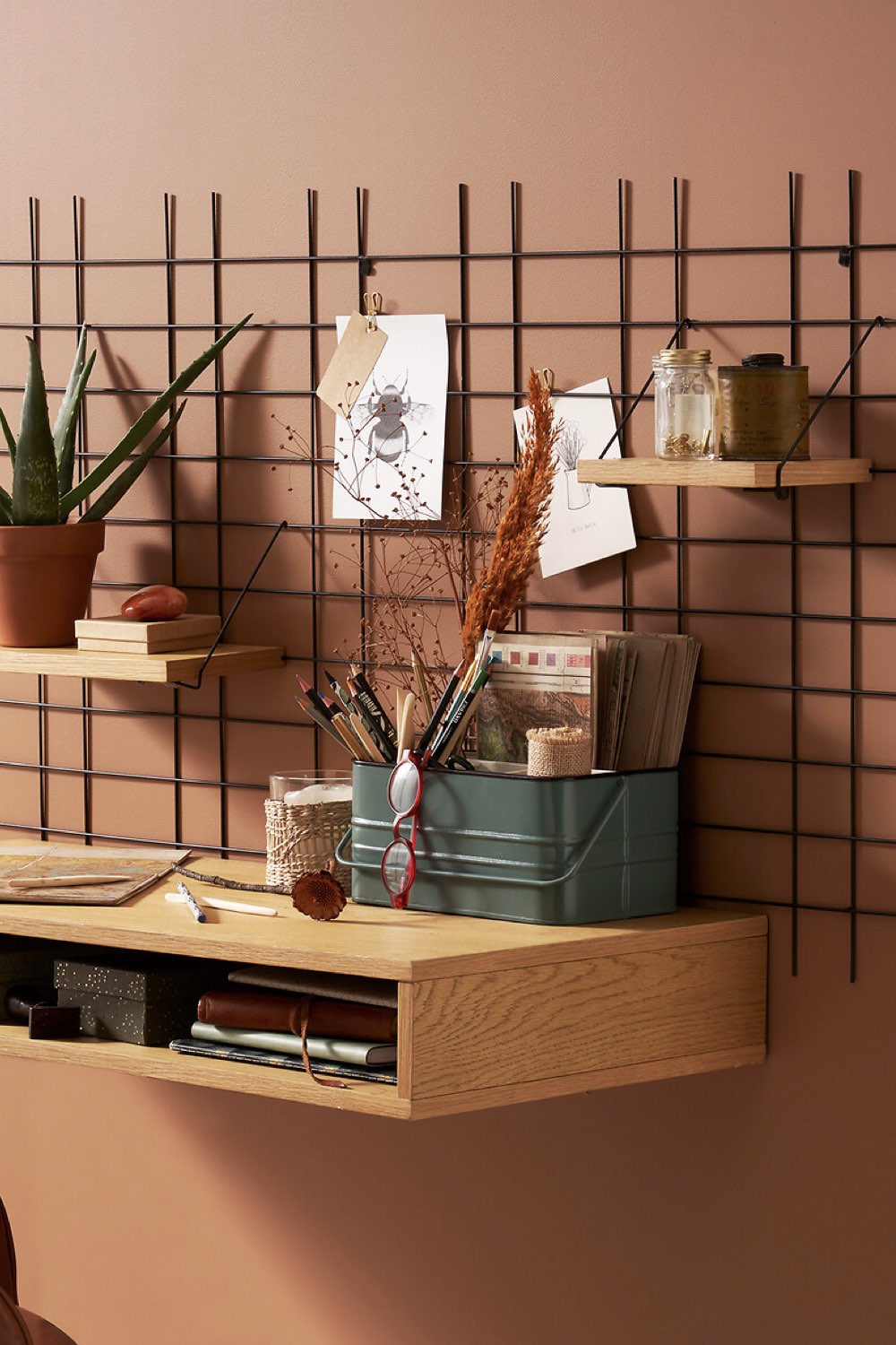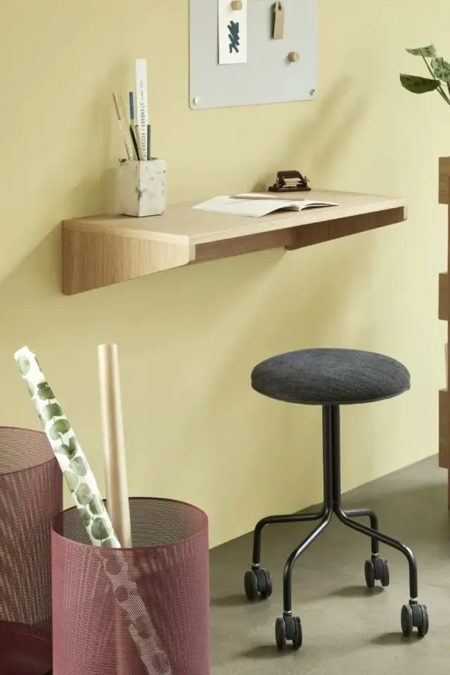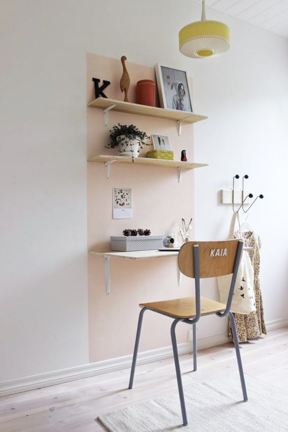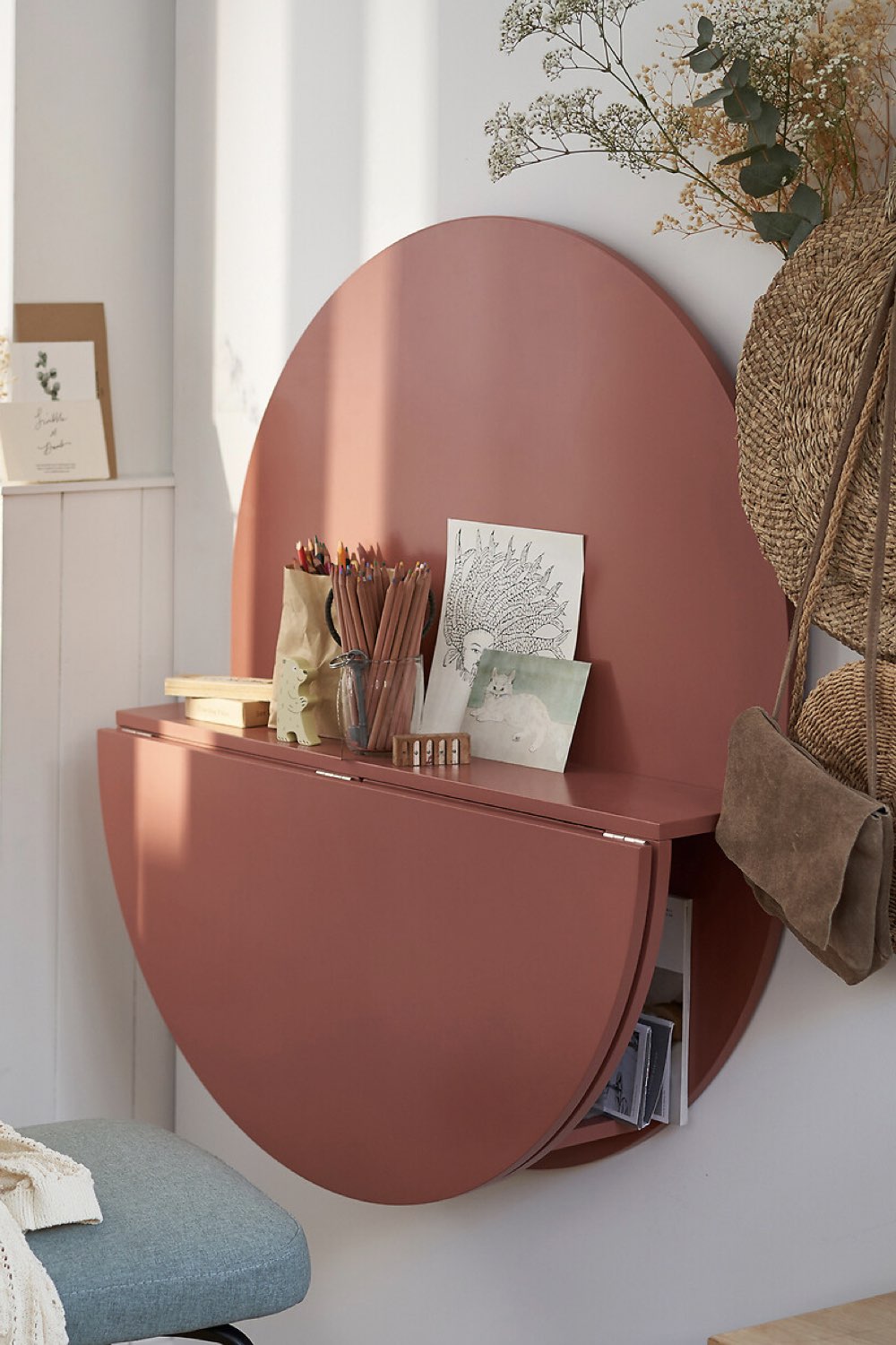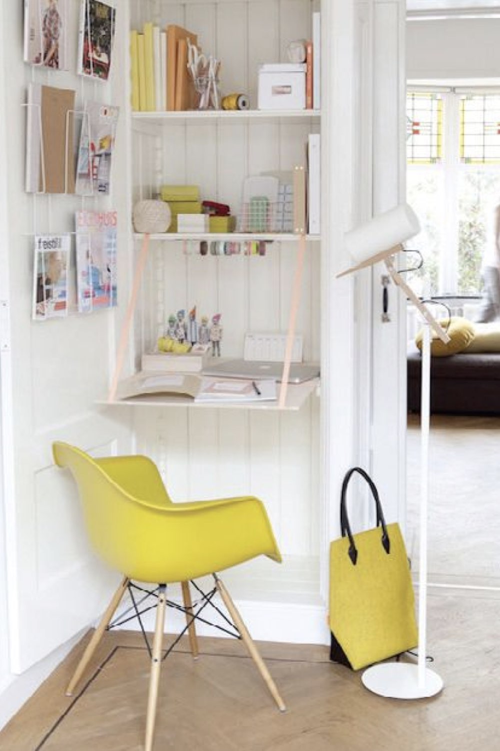 J'aime les petits espaces, j'aime surtout les solutions pour les aménager. Même si le bureau mural convient aussi bien aux petites pièces qu'aux grandes, je vous invite à envisager cette solution si vous avez envie d'un coin bureau chez vous. Dans le salon, dans l'entrée ou encore dans la chambre, son faible encombrement fait qu'il trouve sa place facilement dans une pièce existante.
