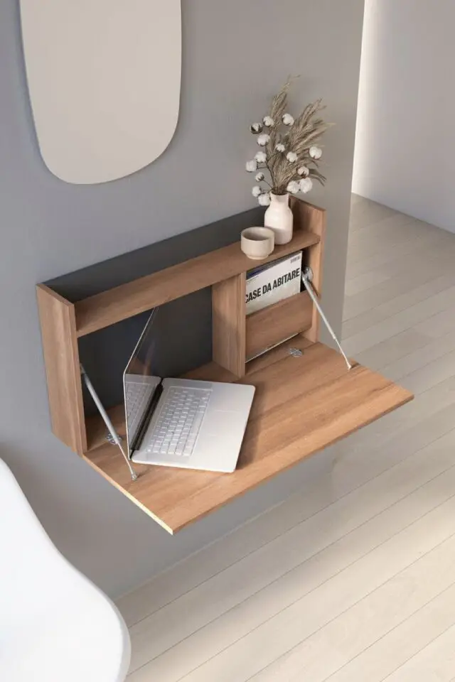 Le bureau mural rabattable est pratique si vous avez besoin d'un espace de travail ponctuel. Si vous télé-travaillez quelques jours à la maison, ça peut être intéressant. En revanche, si vous avez un ordinateur fixe, ce n'est pas une solution intéressante - du moins, vous ne pourrez pas rabattre la tablette et gagner de la place.