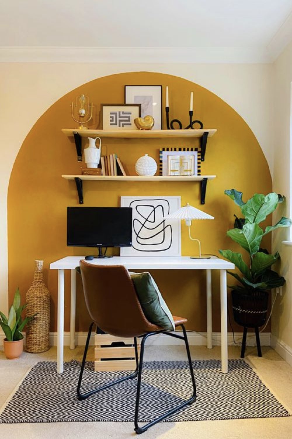 Je vais vous parler du jaune à plusieurs reprises dans cet article. Le jaune comme le orange sont des couleurs - certes solaires - qui favoriseraient la prise de décision. C'est le genre de couleurs qui peut être intéressant quand on est son propre boss et quand on travaille seul•e. Il n'est jamais facile de faire des choix alors si la déco de notre espace de travail peut nous aider, ça se prend!