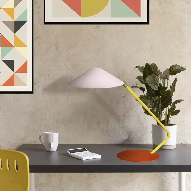 On a déjà évoqué la question du meuble de travail, du fauteuil. Toujours dans l'univers immédiat de l'espace de travail, la lampe de bureau peut être source de couleur. A l'instar du fauteuil, il est très facile de trouver une lampe de bureau colorée dans le commerce (même sans dépenser des sommes folles).