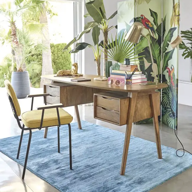 Si vous aimez que chaque chose soit à sa place, vous aurez peut-être envie de délimiter les espaces dans votre pièce. Plusieurs solutions sont possible pour un bureau dans la chambre ou le salon. On peut penser à une arche peinte qui définit l'espace travail, un tapis au sol ou encore un paravent. Cette idée est vraiment intéressante quand on veut cloisonner vie pro et vie perso.
