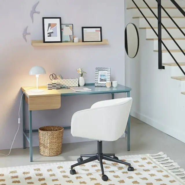 Pour garder un sentiment d'harmonie si le bureau se trouve dans une autre pièce, il est conseillé de choisir une palette de couleurs similaires pour le bureau que celle qui se trouve déjà dans la pièce. Que ce soit la chambre, le salon ou encore l'entrée, votre coin travail se fera plus discret.