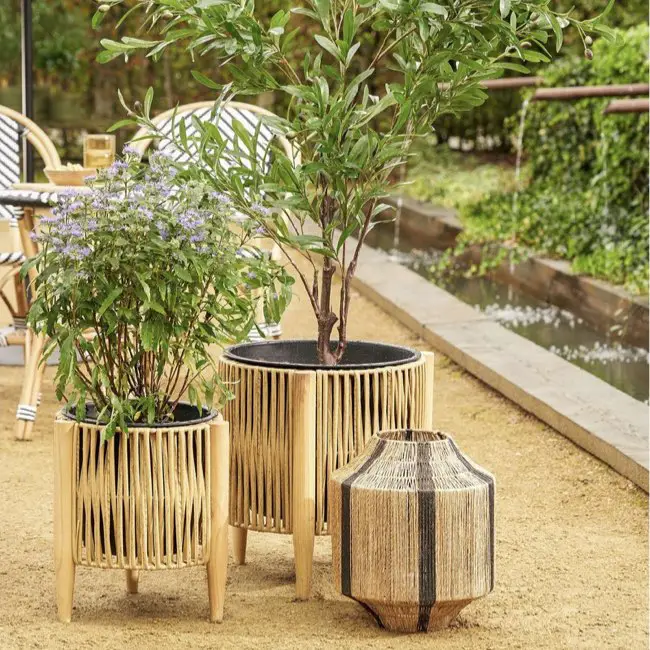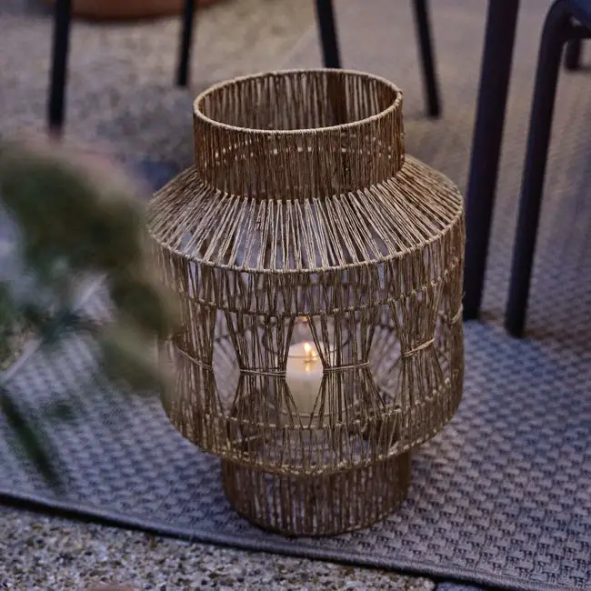 - Pour un extérieur naturel et / ou bohème, les lanternes en fibres tressées (bambou, rotin, osier...)