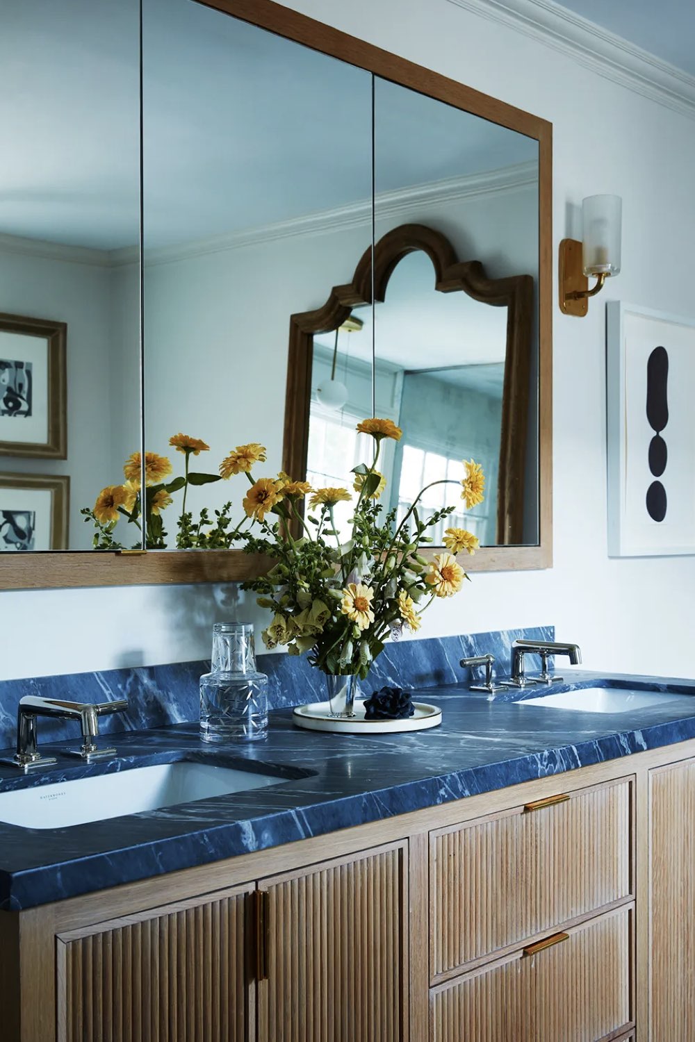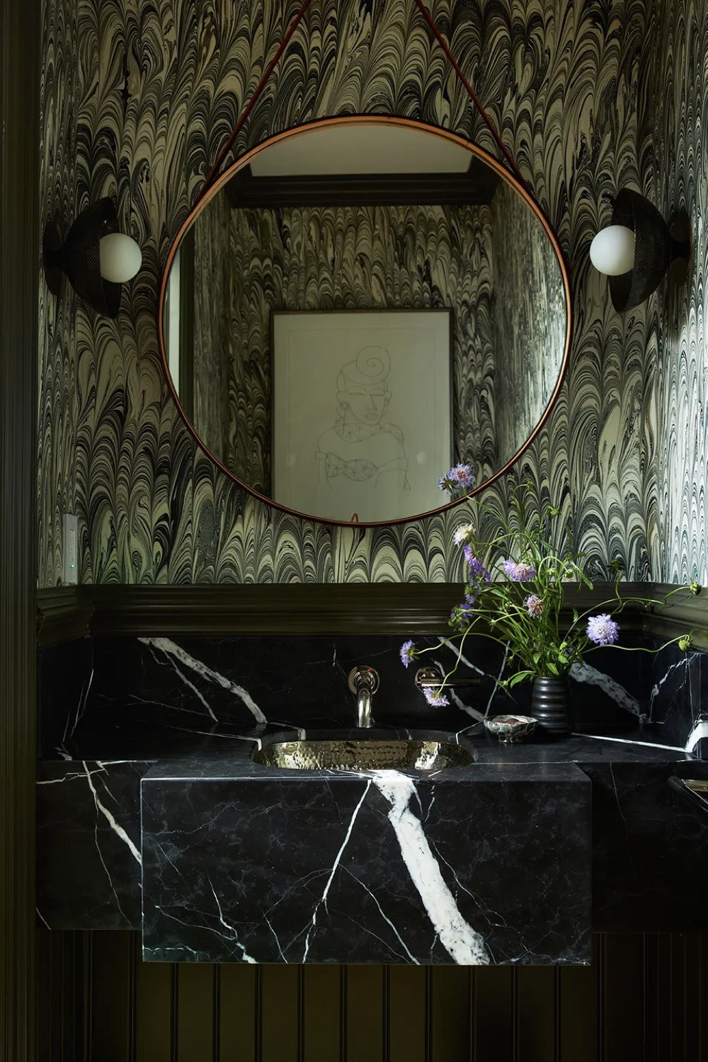 J'aime quand il n'y a pas de déchets superflus. Dans un projet de rénovation, il y a souvent beaucoup de déchets et donc essayer de les limiter est une bonne chose. Le manteau de cheminée dans la salle à manger a été changé. Le marbre du manteau de cheminée a servi aussi pour créer un plan vasque.