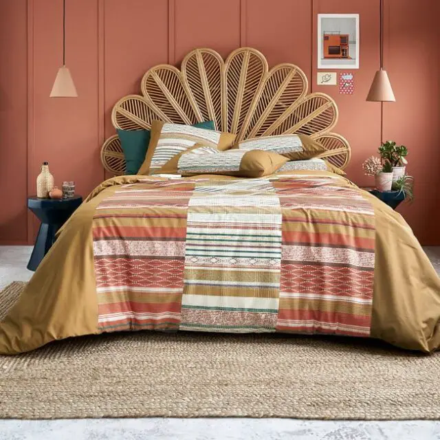 On aime: Le rotin sous une forme inattendue, la possibilité de fixer la tête de lit au mur.