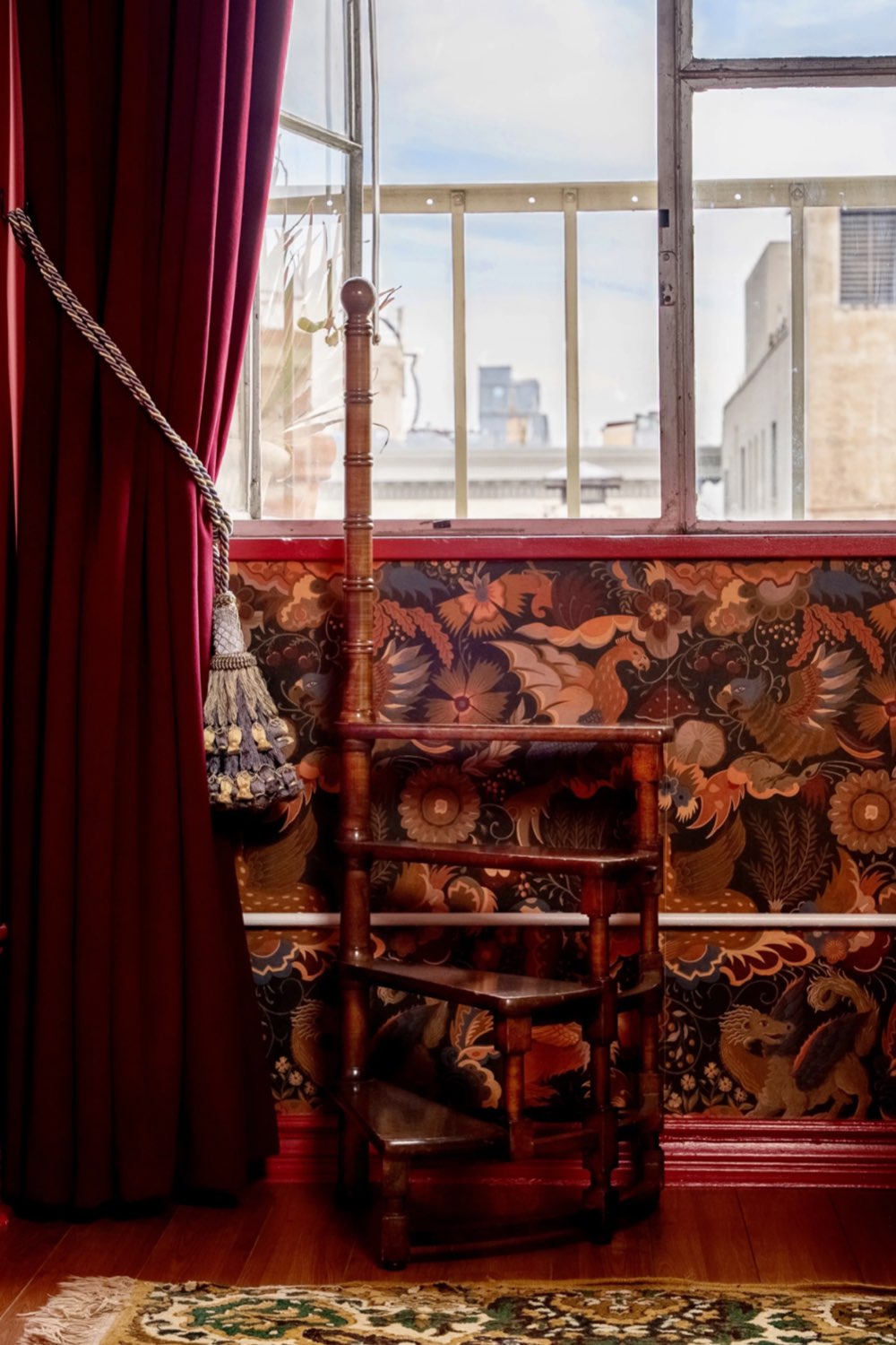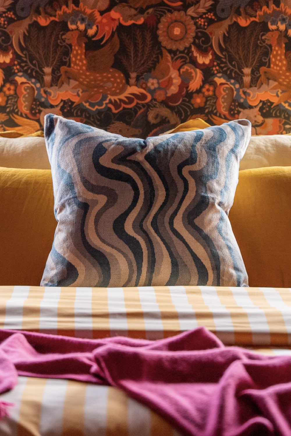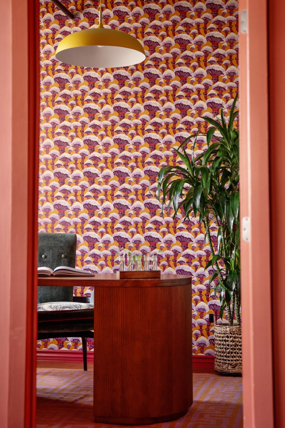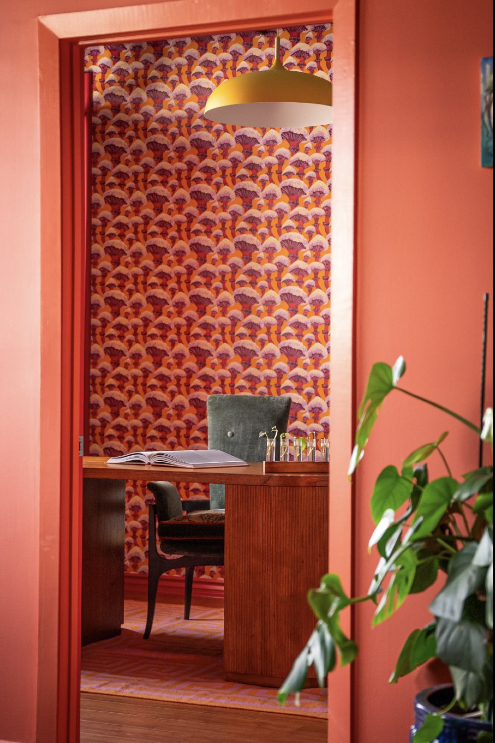 Le maximalisme peut prendre différentes formes: de la couleur, des objets, des meubles, des motifs... Ici, il y a la couleur qui saute aux yeux mais ce n'est pas la seule manière dont le maximalisme prend forme. Il y a par exemple des papiers peints audacieux, qu'on ne croise pas à tous les coins de rue.