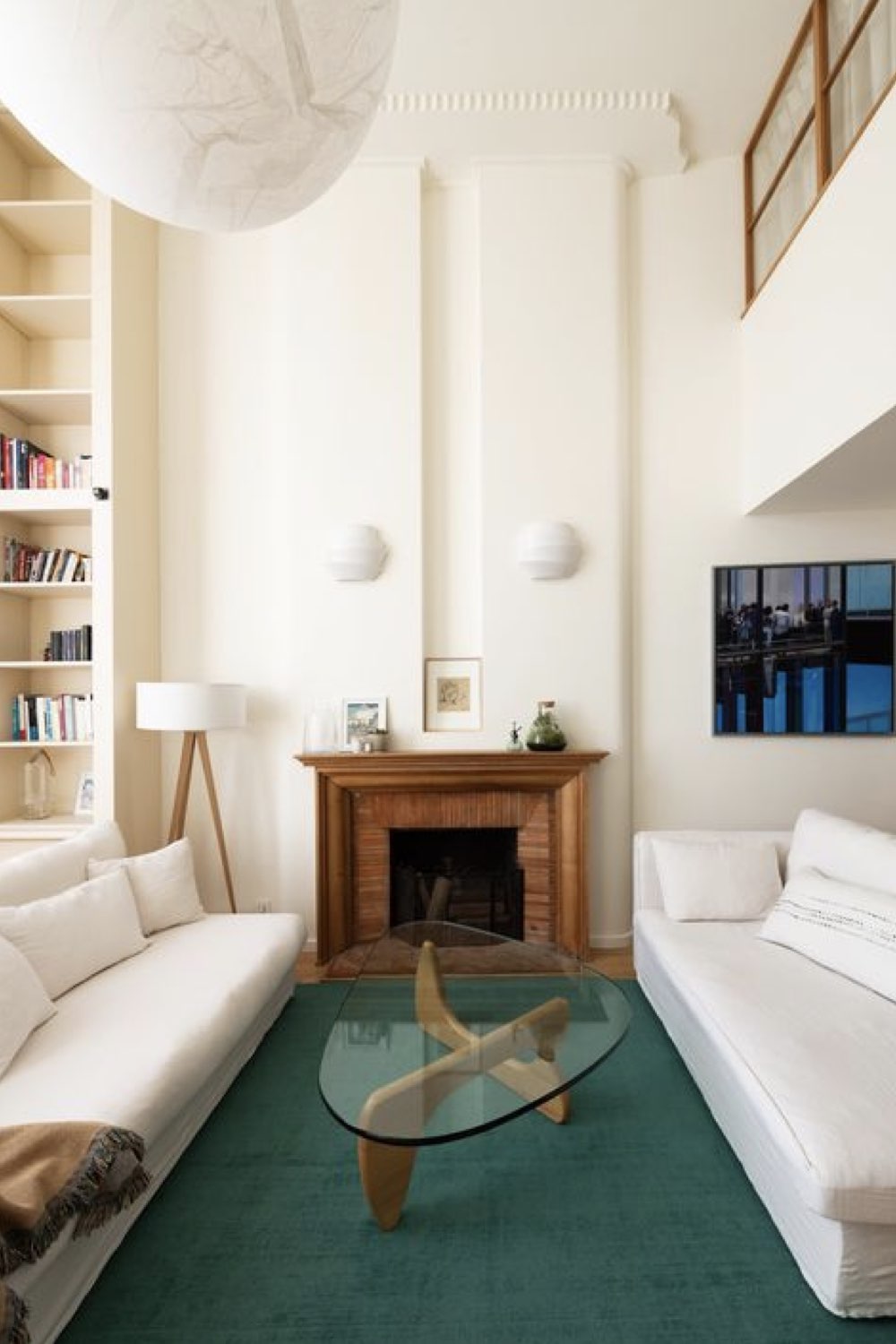 Je ne savais pas trop dans quelle partie caser cette thématique que j'affectionne beaucoup. C'est une alternative à la fois au canapé d'angle et au meuble TV. Le salon avec deux canapés offre de nombreuses places assises. Il y a un côté plus modulable par rapport à un canapé d'angle. Et j'aime beaucoup quand ces deux canapés sont placés l'un en face de l'autre. C'est une manière subtile de placer l'échange et la conversation au coeur de la pièce à vivre. J'aime l'idée qu'après une journée de travail on puisse se retrouver et discuter.