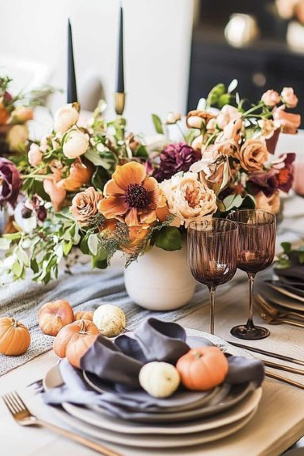 01 / 10 • Un centre de table élégant et automnal qui ne prend pas de place