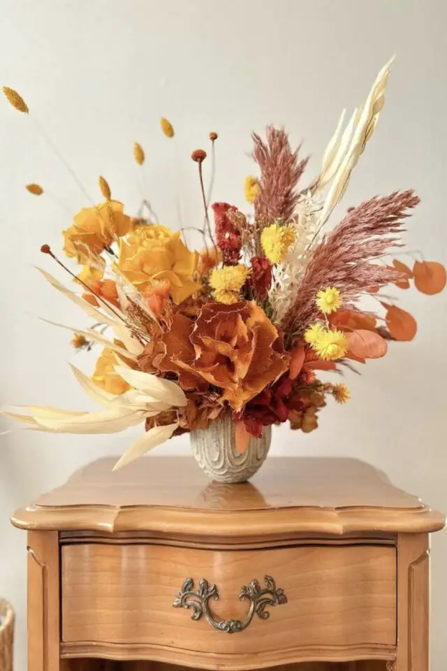 08 / 10 • Un bouquet de fleurs jaunes et orangées pour offrir un air d'automne à votre intérieur
