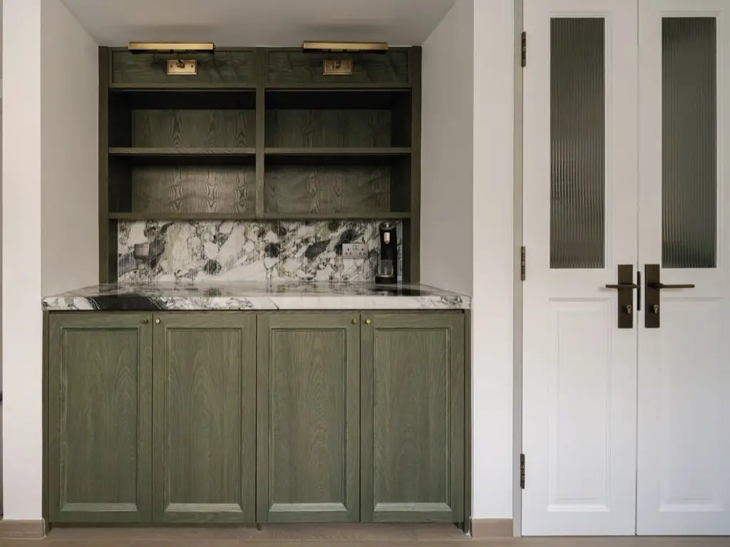 Enfin, il y a un aménagement qui me parle beaucoup, c'est le coin café juste à côté des escaliers. C'est un bar à café et à alcool en en marbre d'Amazonie. Et même si on ne peut pas le deviner sur les photos, on peut facilement imaginer comme il doit être agréable de sentir la douce odeur du café quand on descend les escaliers le matin.