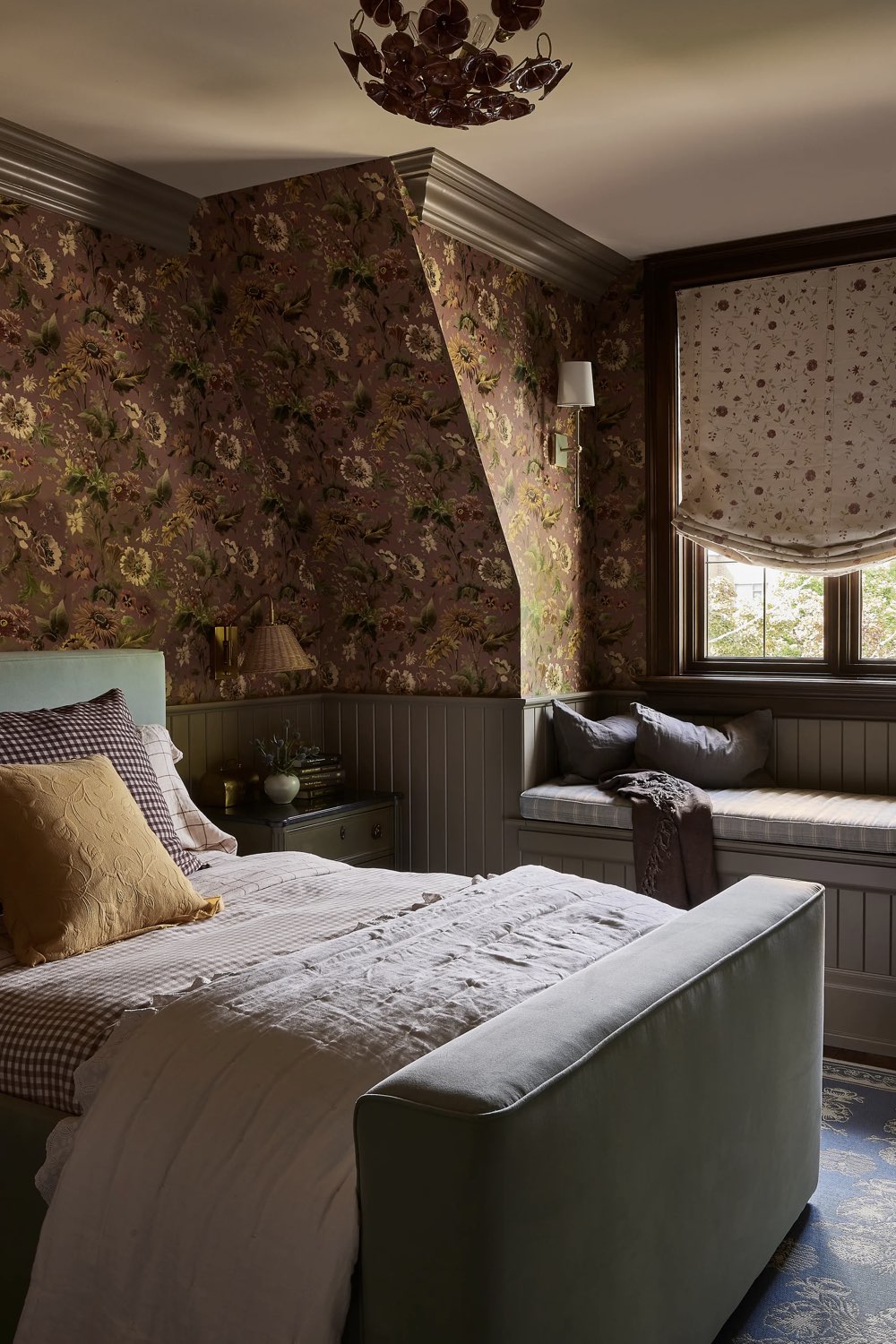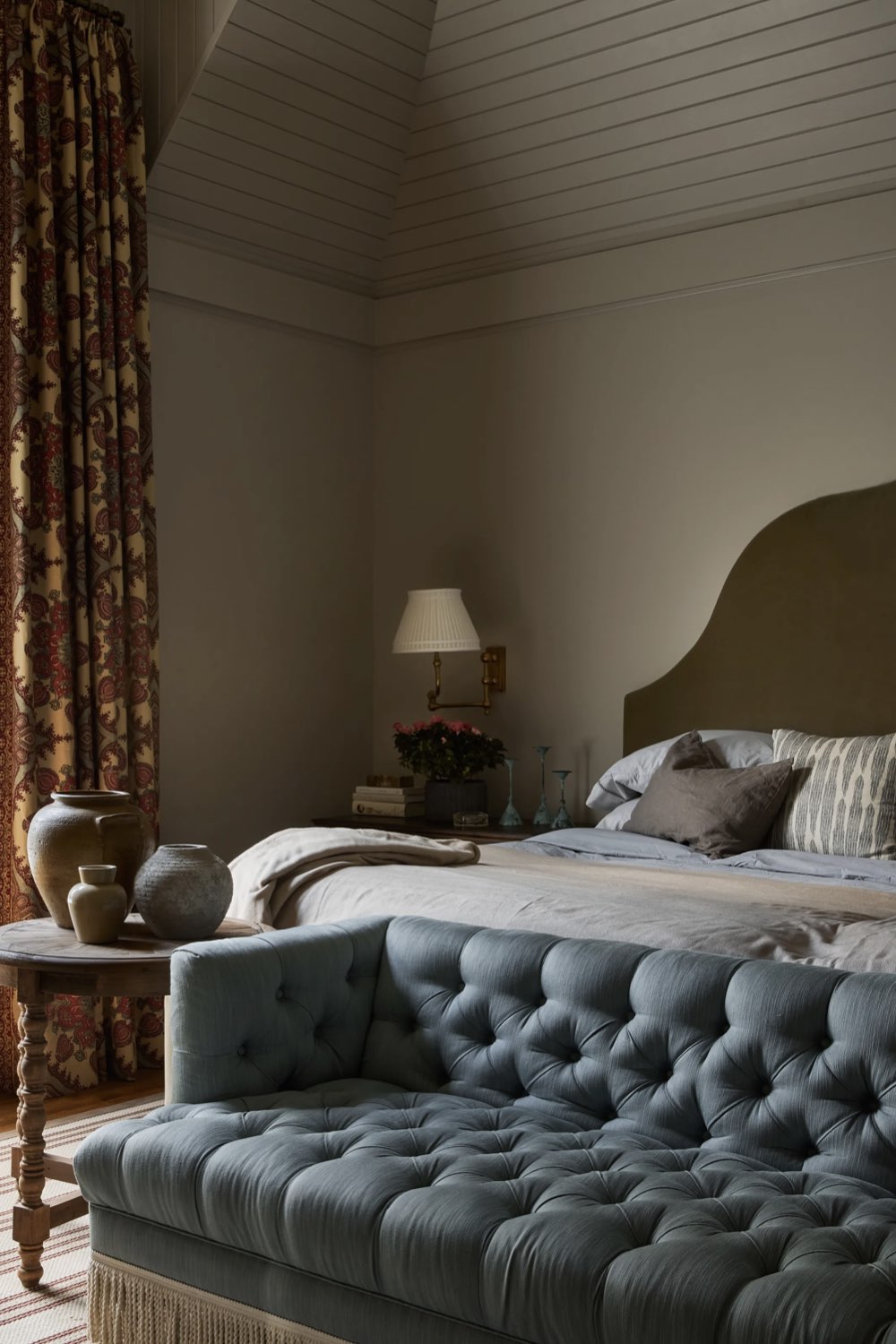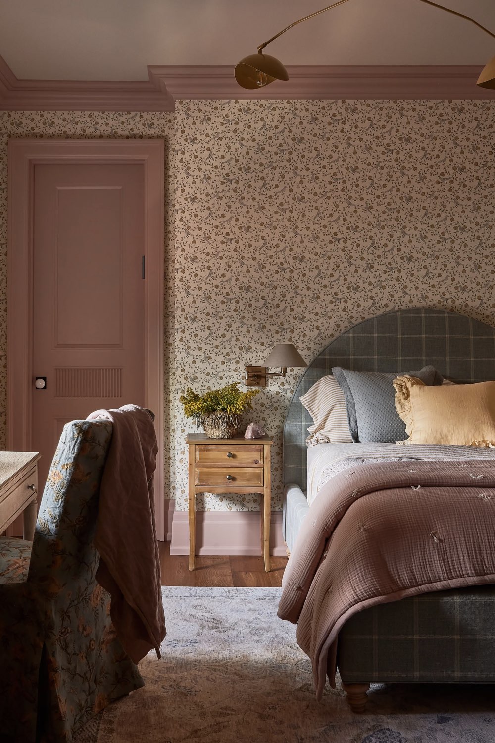Le mélange de couleurs et de motifs n'est pas la seule caractéristique relative au style Grandmillennial dans cette demeure. On y trouve également de nombreuses références à une / des époques révolues mais aussi une forte idée de confort.