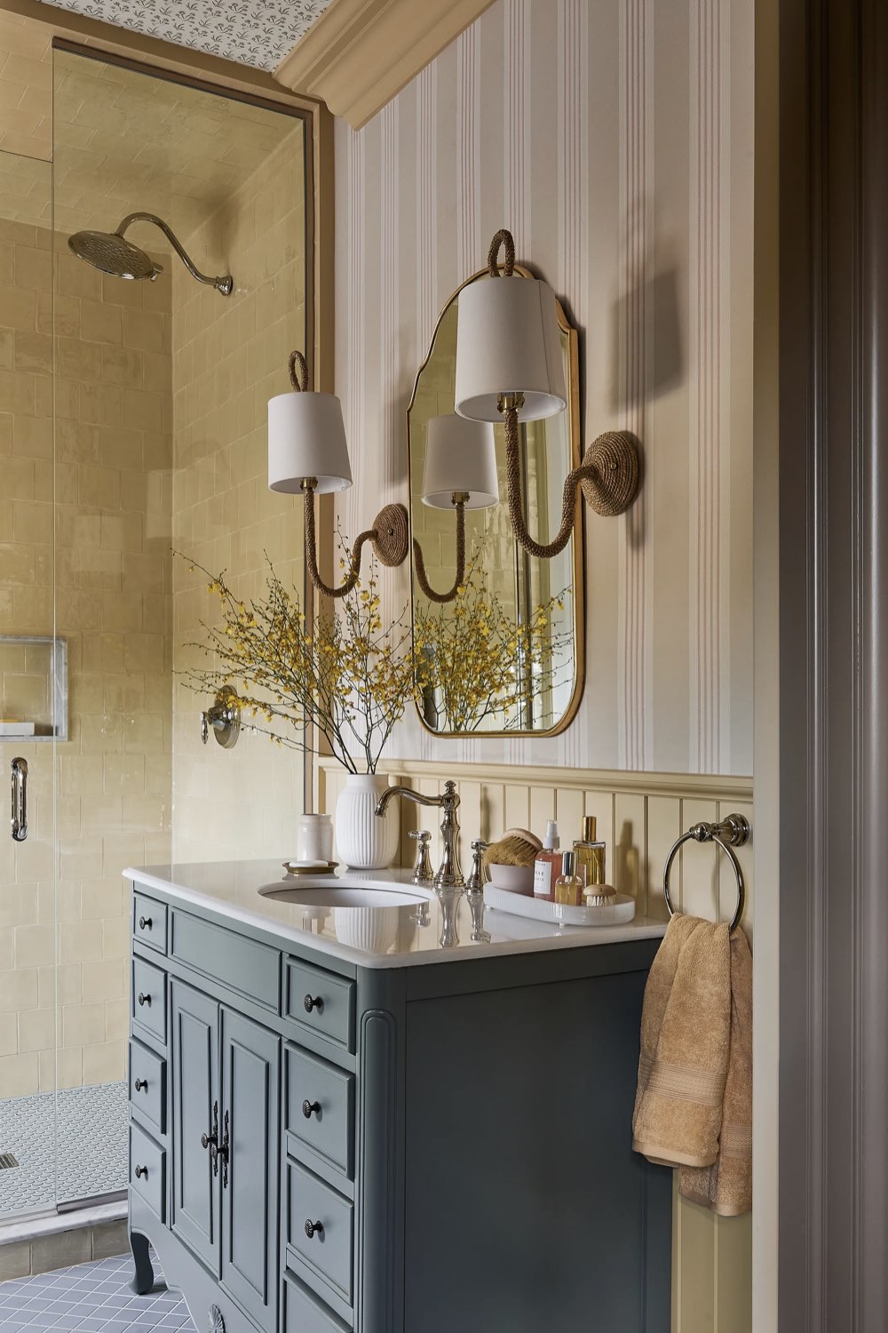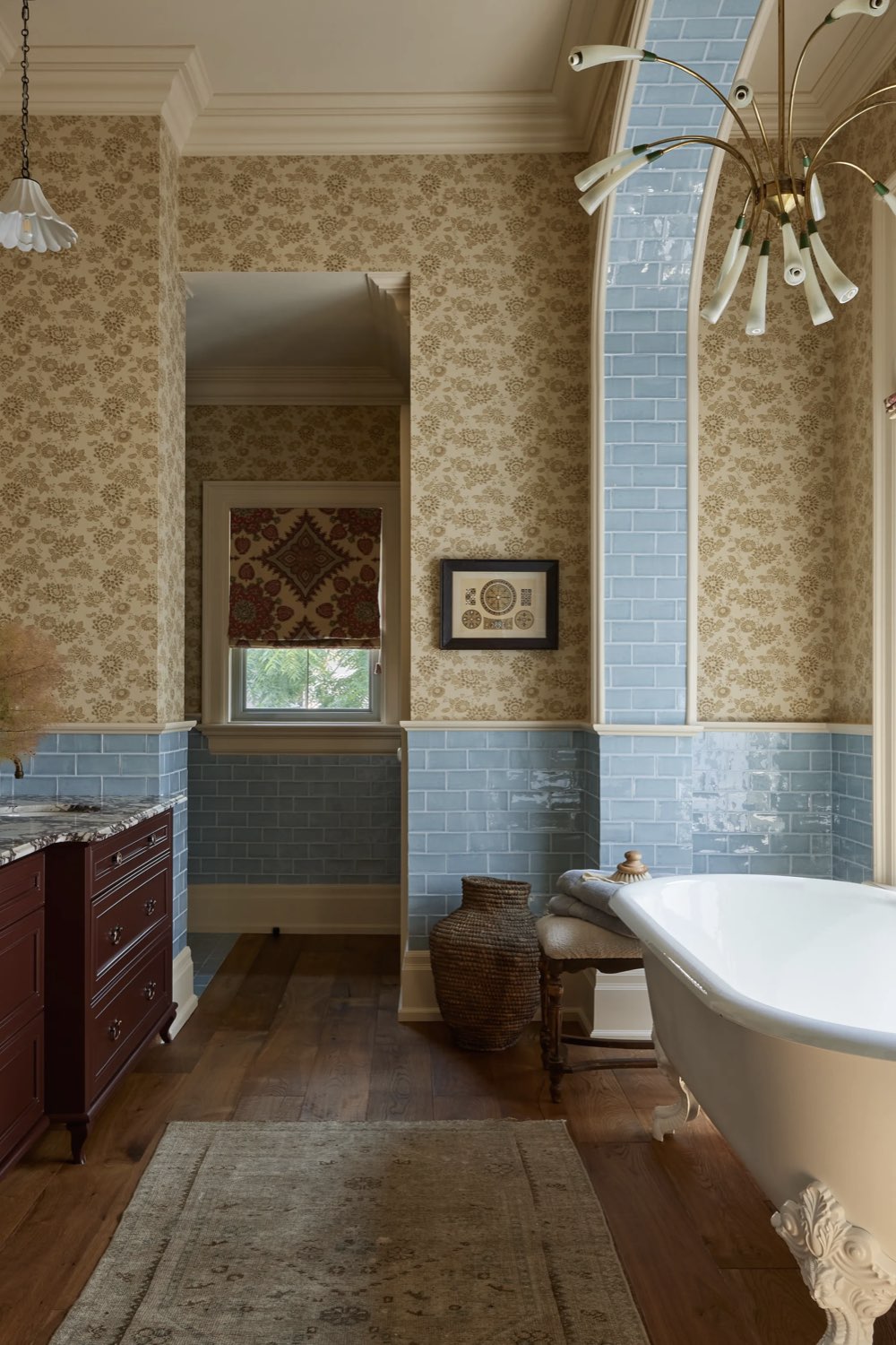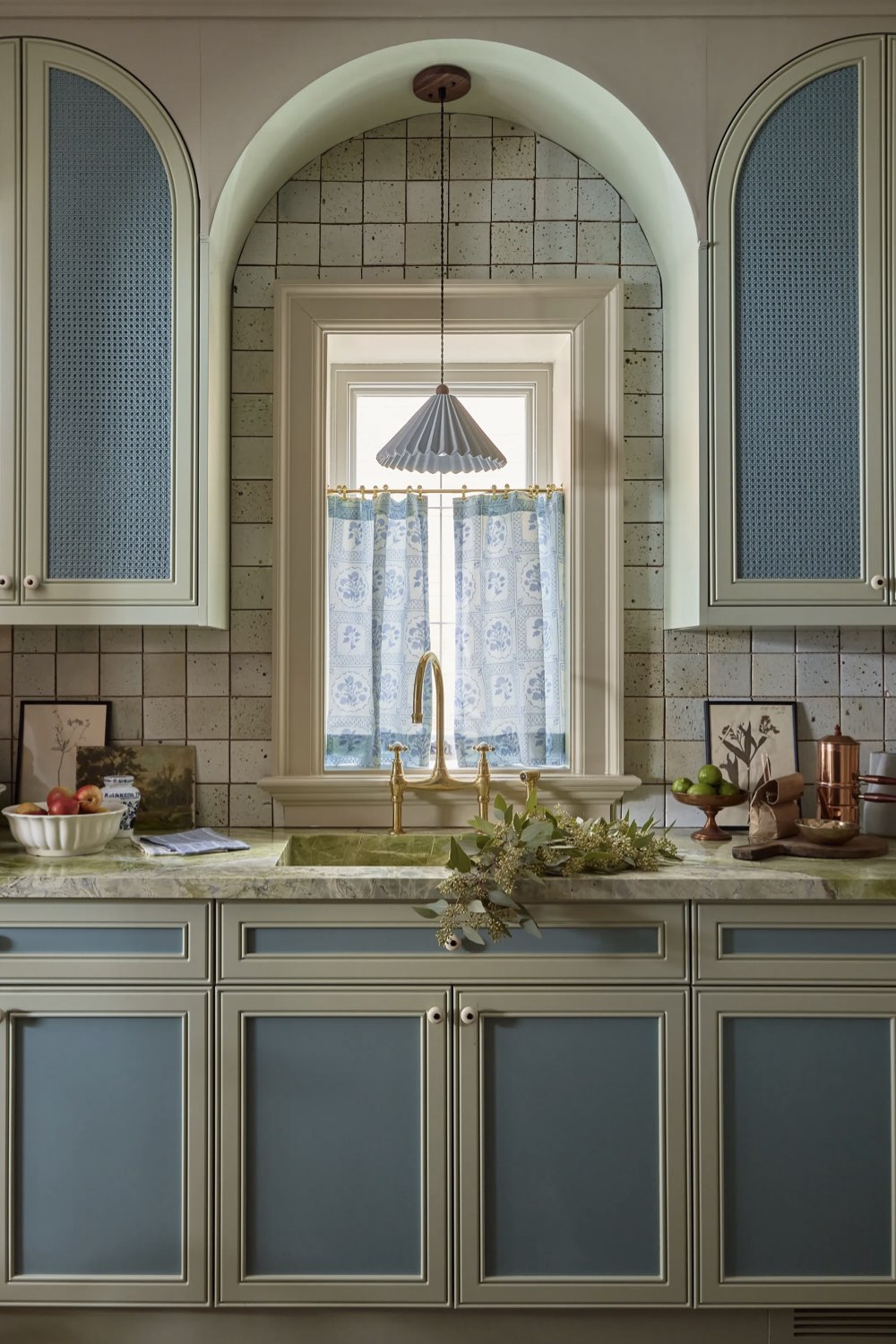 Le mélange de couleurs et de motifs n'est pas la seule caractéristique relative au style Grandmillennial dans cette demeure. On y trouve également de nombreuses références à une / des époques révolues mais aussi une forte idée de confort.