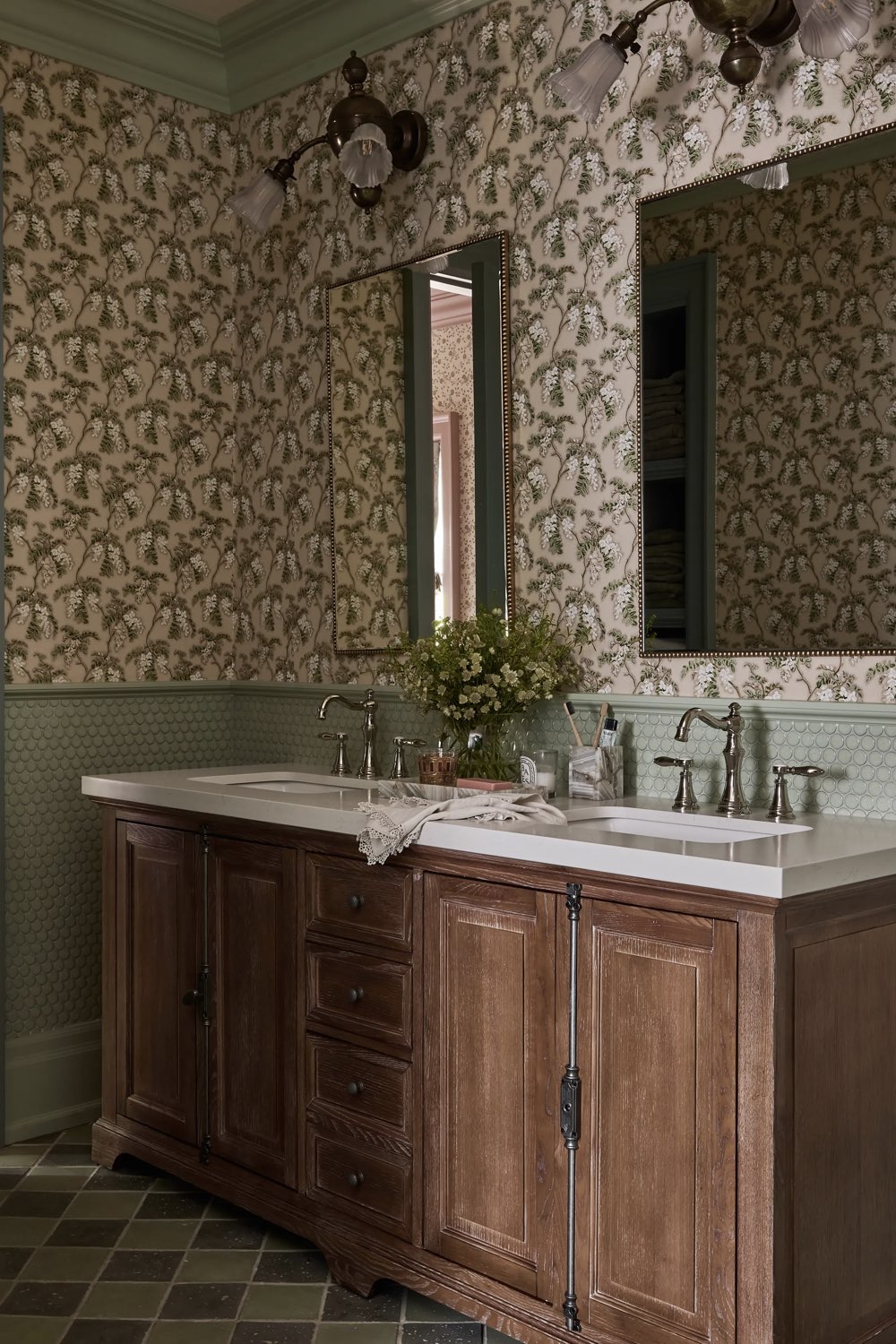 Par ailleurs, pour rester dans l'idée d'ancien propre au style grandmillennial, les couleurs ont été choisies dans le nuancier de Farrow & Ball, célèbre ancienne anglaise qui a su retranscrire le chic outre Manche à travers la couleur.