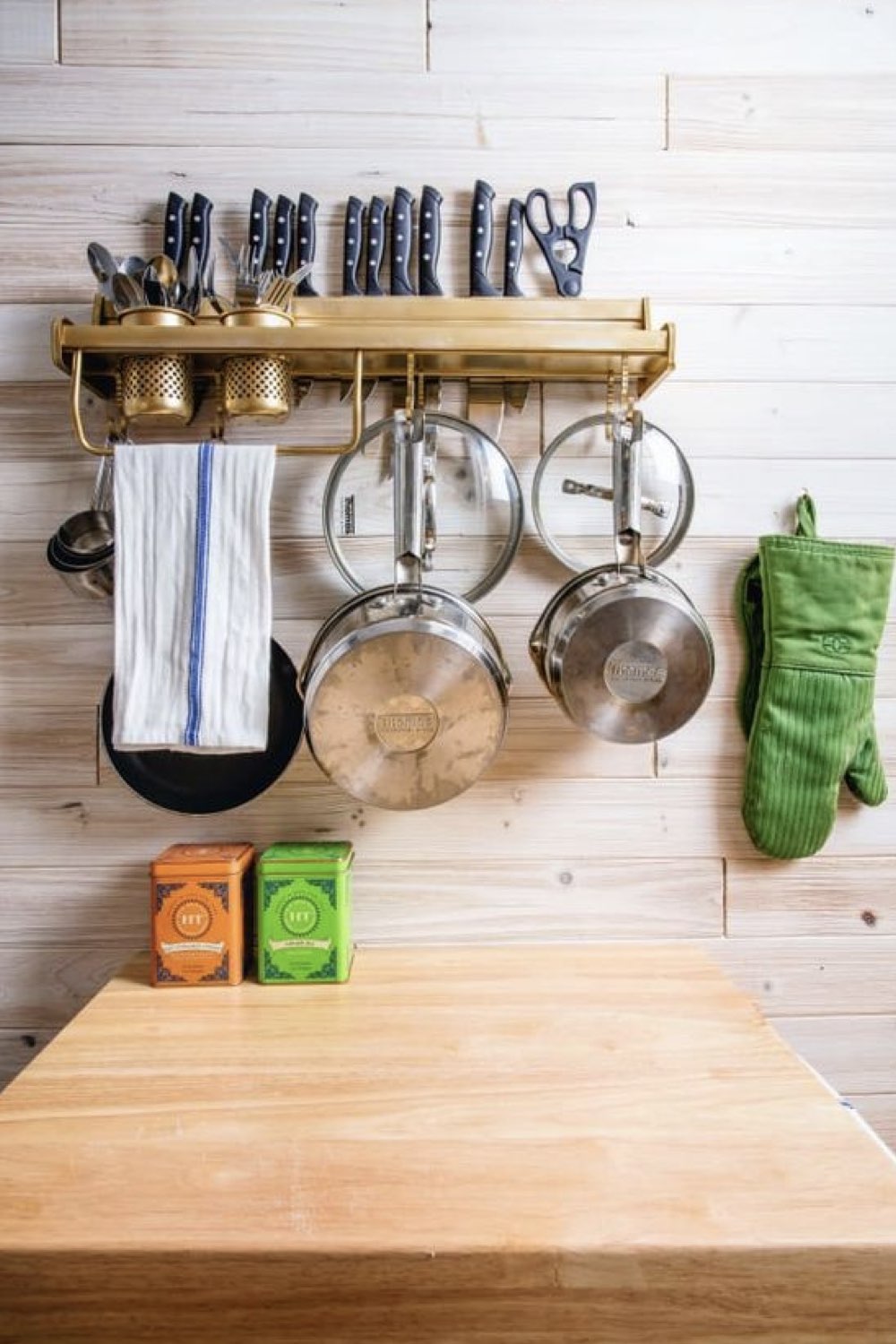 Souvent on cherche à mieux organiser son intérieur pour gagner de la place. La cuisine est souvent une pièce que l'on cherche à rendre plus pratique. Et j'aime l'idée d'utiliser un mur pour pouvoir mieux organiser l'espace où l'on prépare à manger. On garde à portée de main tout ce qui sert au quotidien et on n'a pas besoin de fouiller dans les placards pour trouver le nécessaire de préparation et cuisson. J'aime beaucoup l'exemple sélectionné parce qu'il offre également une place aux couvercles qui sont toujours un peu pénibles à ranger.