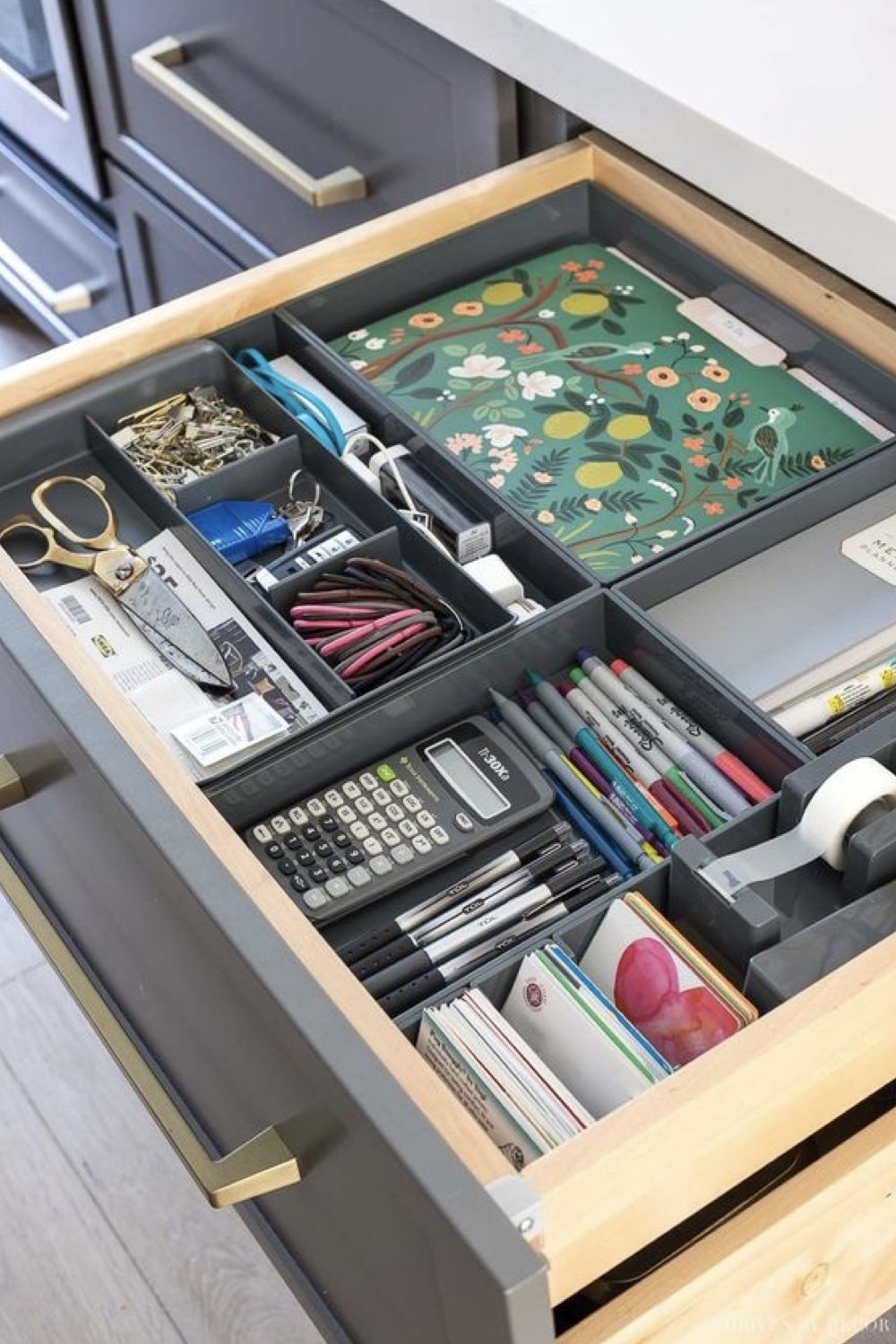J'écris cet article au moment de la rentrée. C'est la période de l'année où je parle le plus de bureau. En général, je parle de couleurs, de productivités, d'éclairage... Bref, des facteurs décoratifs mais cet article dédié à l'organisation me permet d'aborder rapidement la question de l'organisation de tiroir. Dans le même esprit que le tiroir à pharmacie, l'espace de rangement offert par le tiroir est divisé pour qu'il soit plus pratique. En un coup d'oeil, il est facile de trouver ce que l'on cherche.
