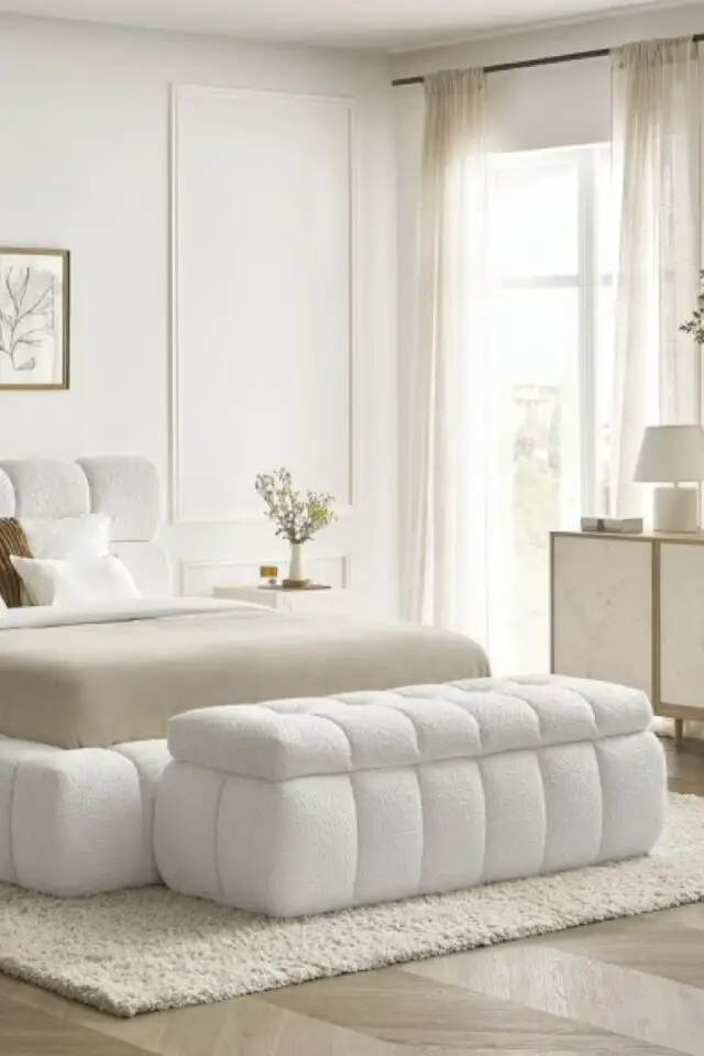 Question style, il y en a pour tous les goûts. Il est encore facile de trouver un bout de lit scandinave et hygge avec des pieds en bois et un tissus neutre pour l'assise. Un choix passe-partout qui reste résolument moderne. Il est possible d'opter pour un bout de lit capitonné qui peut avoir un design très actuel ou au contraire plus classique. Le capitonnage influence l'idée de confort et de moelleux. Et puis, il y a les modèles modernes aussi bien dans leur forme (beaucoup d'arrondis) que par leur couleur et textiles (velours et bouclettes sont des matériaux parfaits pour accentuer l'esprit cocooning de la chambre à coucher).