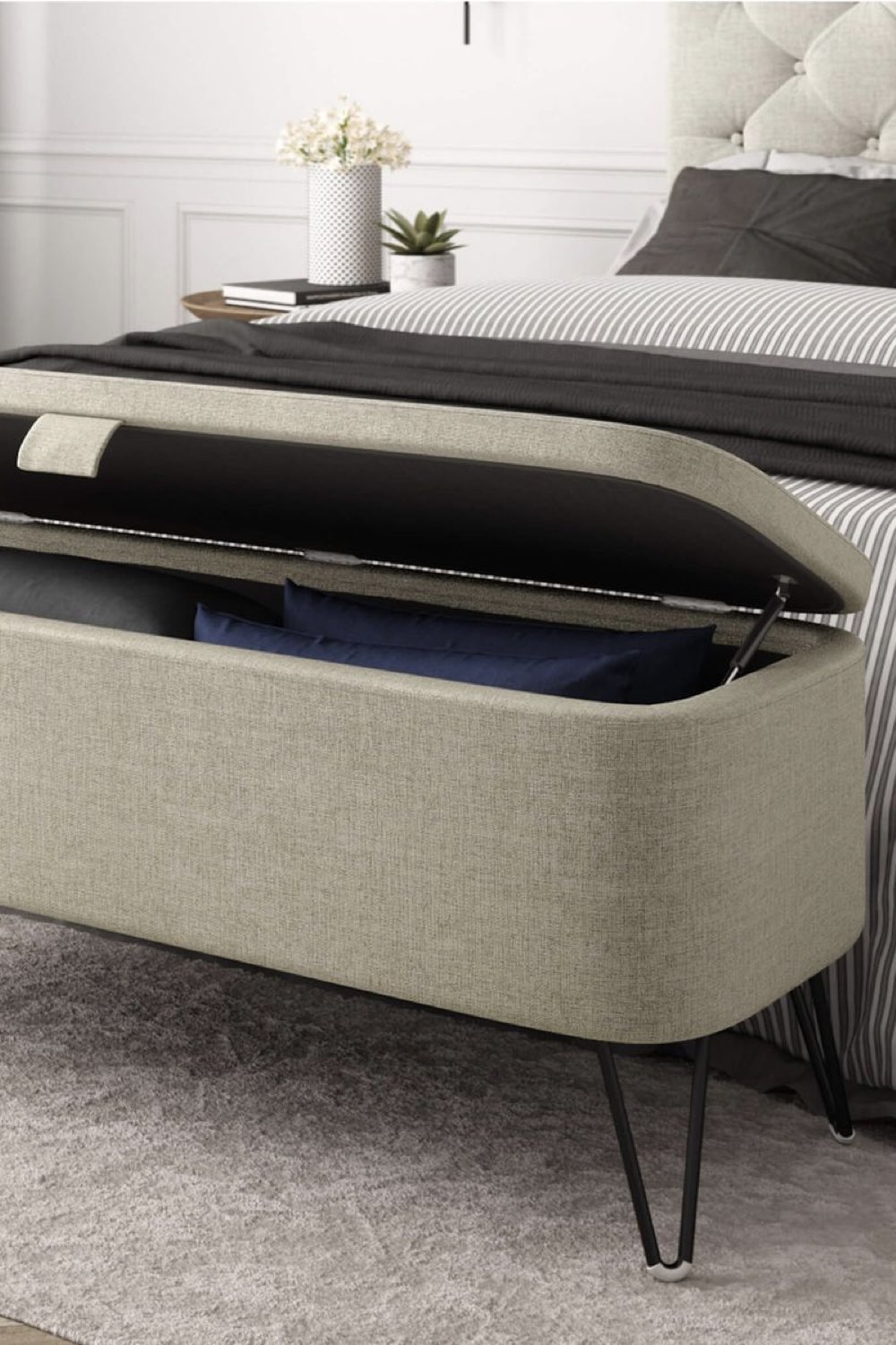 Les bouts de lit coffres sont intéressants à plus d'un titre puisqu'en plus d'apporter une touche déco à votre espace nuit, ils offrent également un complément de rangement dans la chambre. Pratique pour entreposer la couette d'été, les parures de lit ou encore quelques coussins supplémentaires.