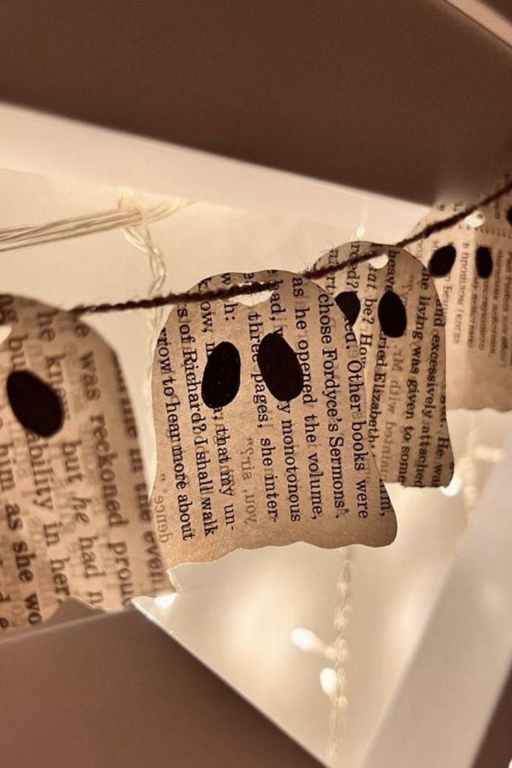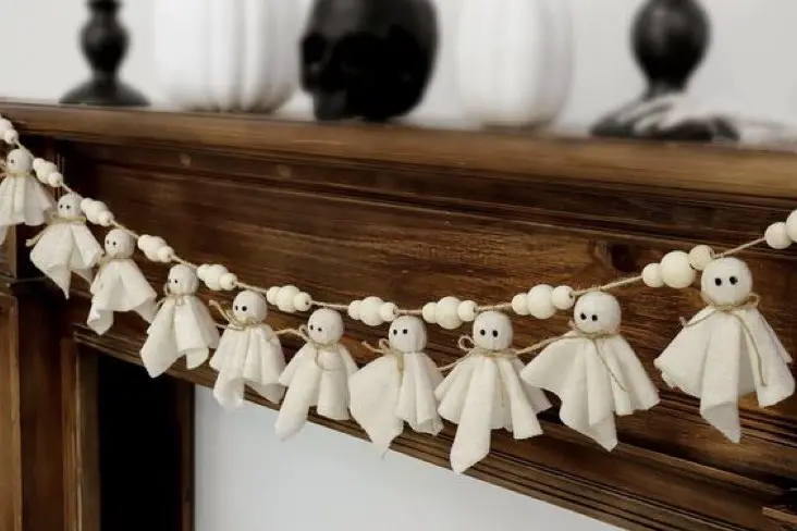 - créer une guirlande de petits fantômes avec des chutes de tissu blanc,
