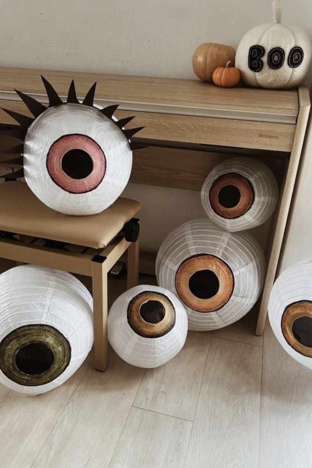 - yeux XXL confectionnés à partir de luminaires en papier
