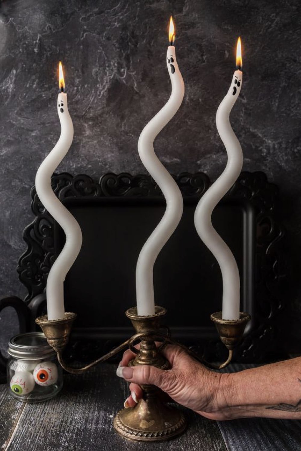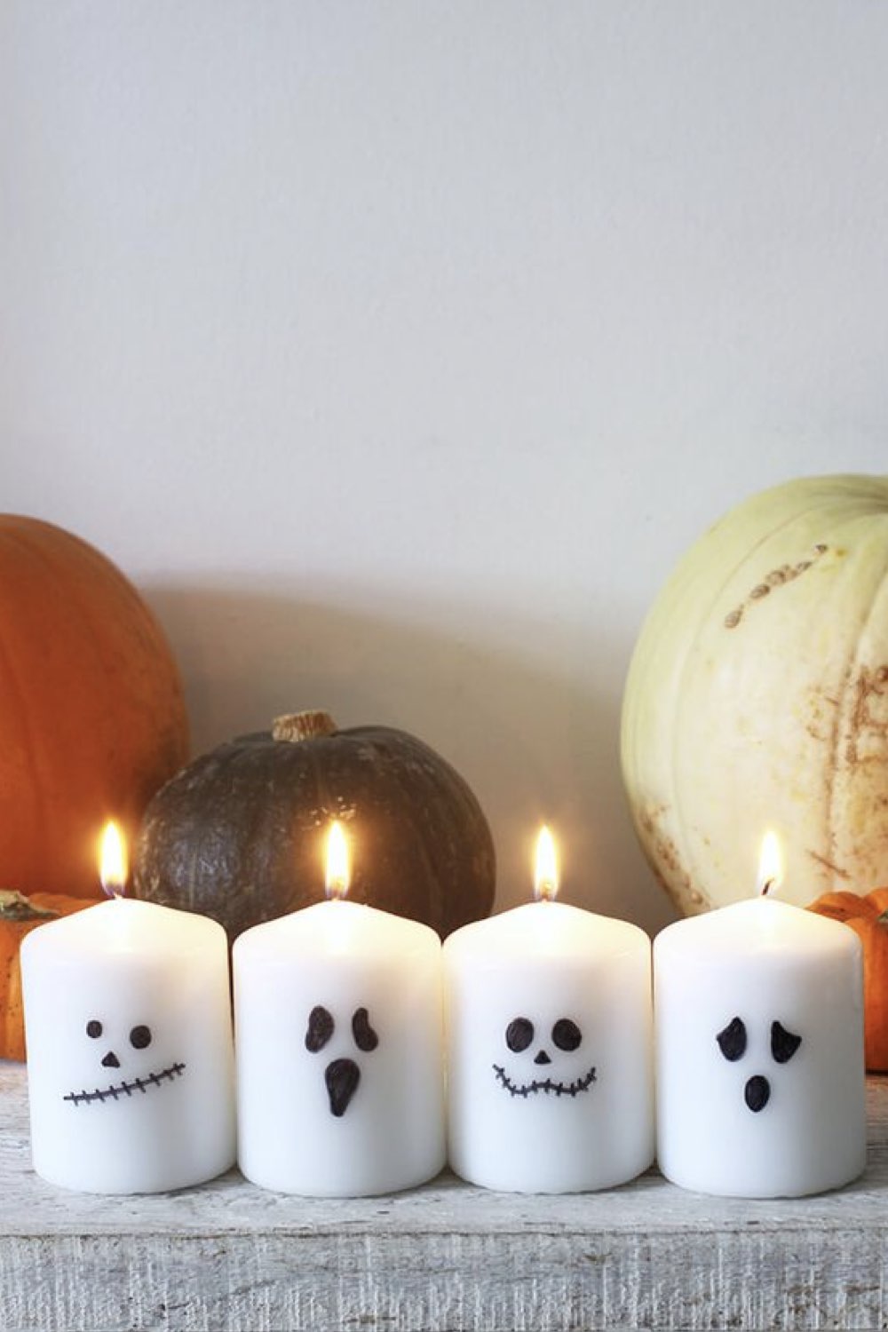 - dessiner des yeux et une bouche sur une bougie blanche pour créer un fantôme,