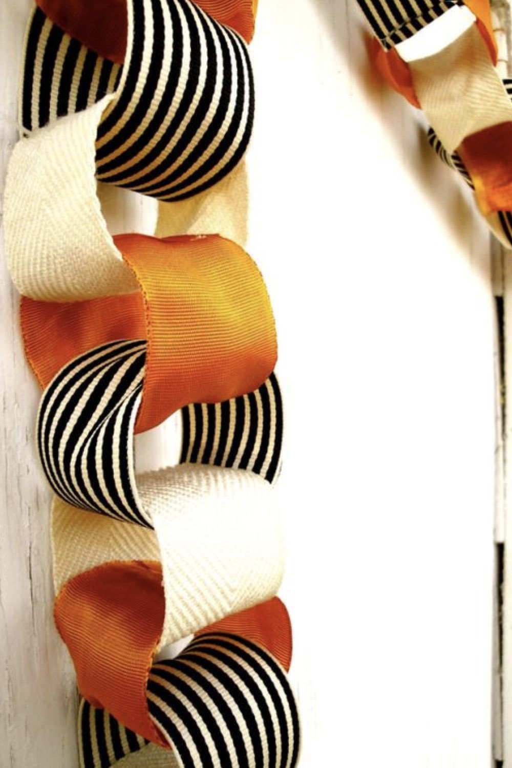 - guirlandes avec des ronds de papier orange, blanc et noir,