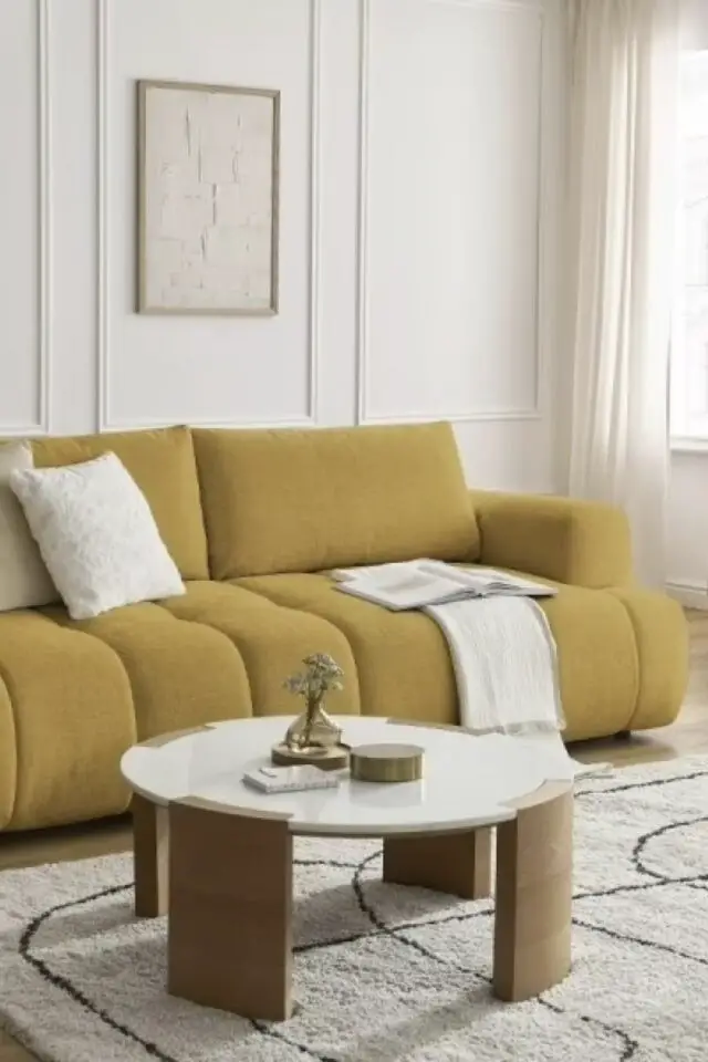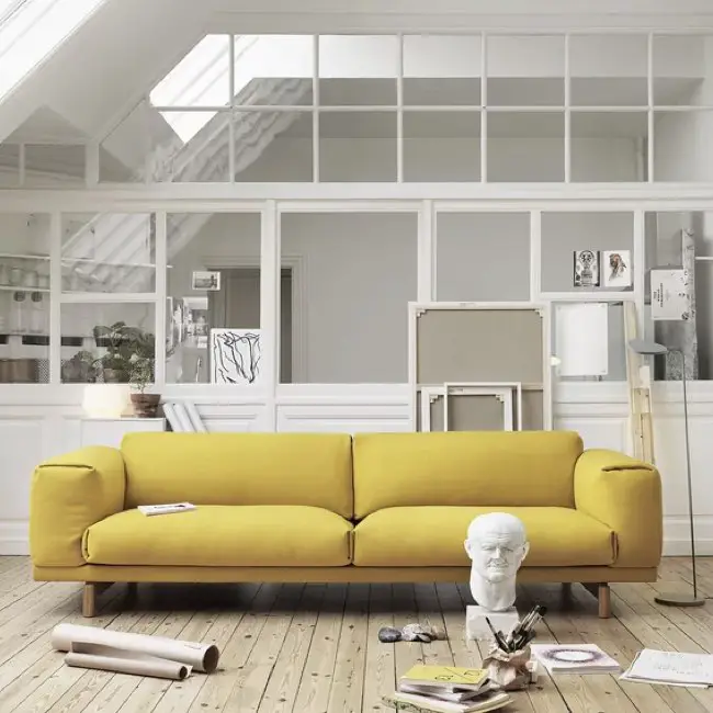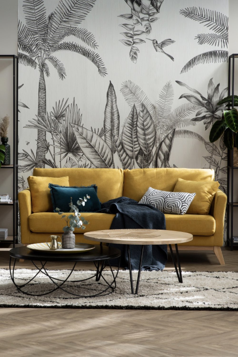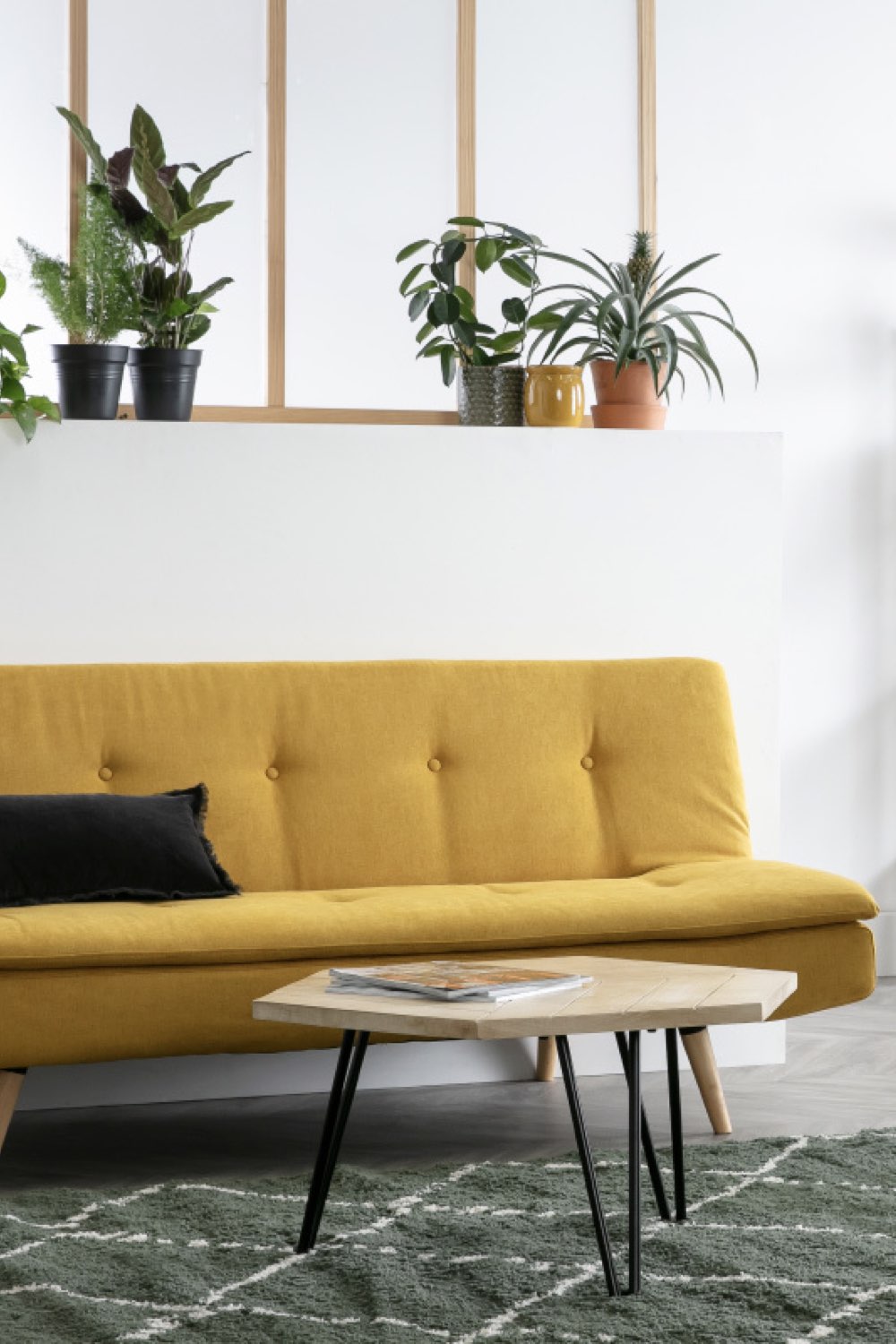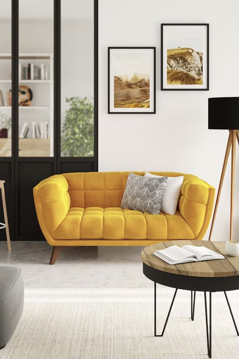 - En jaune franc, le canapé est plus vivant, plus dynamique. Cette couleur est parfaite pour accentuer l'idée de vie dans le salon.