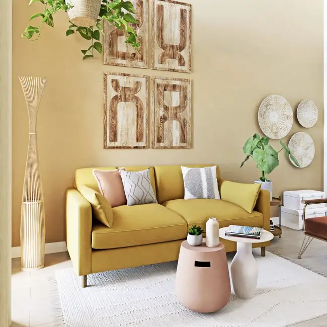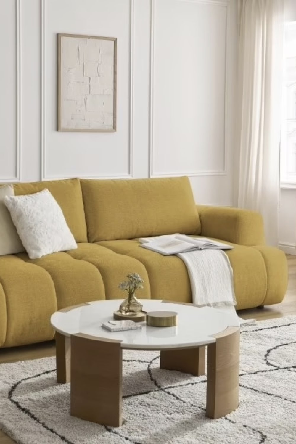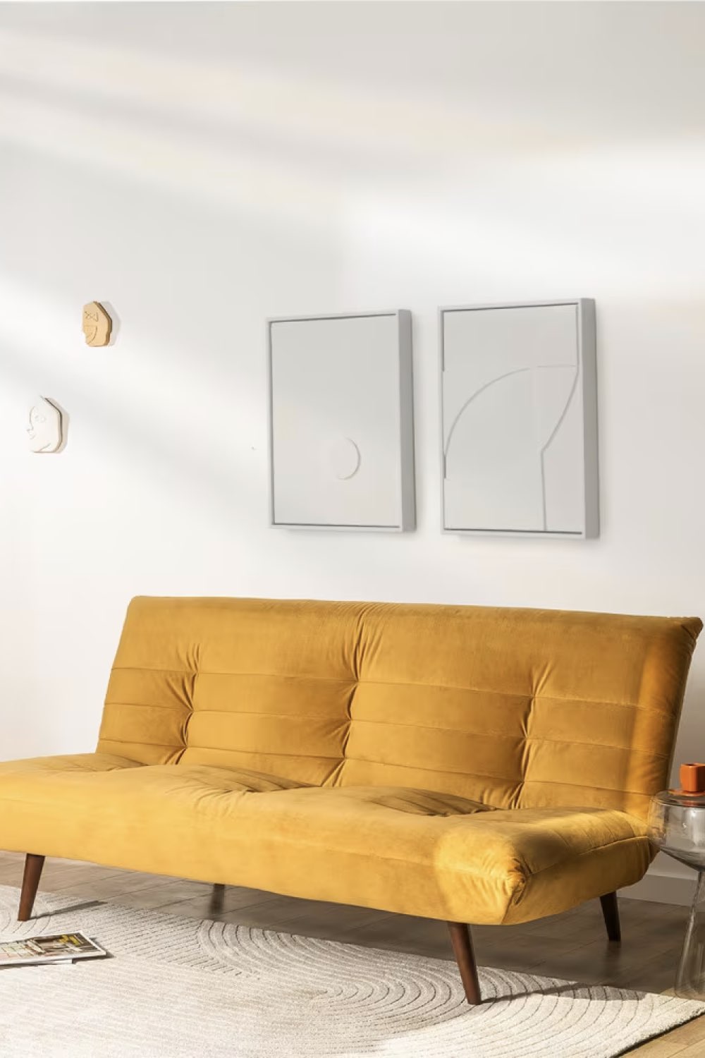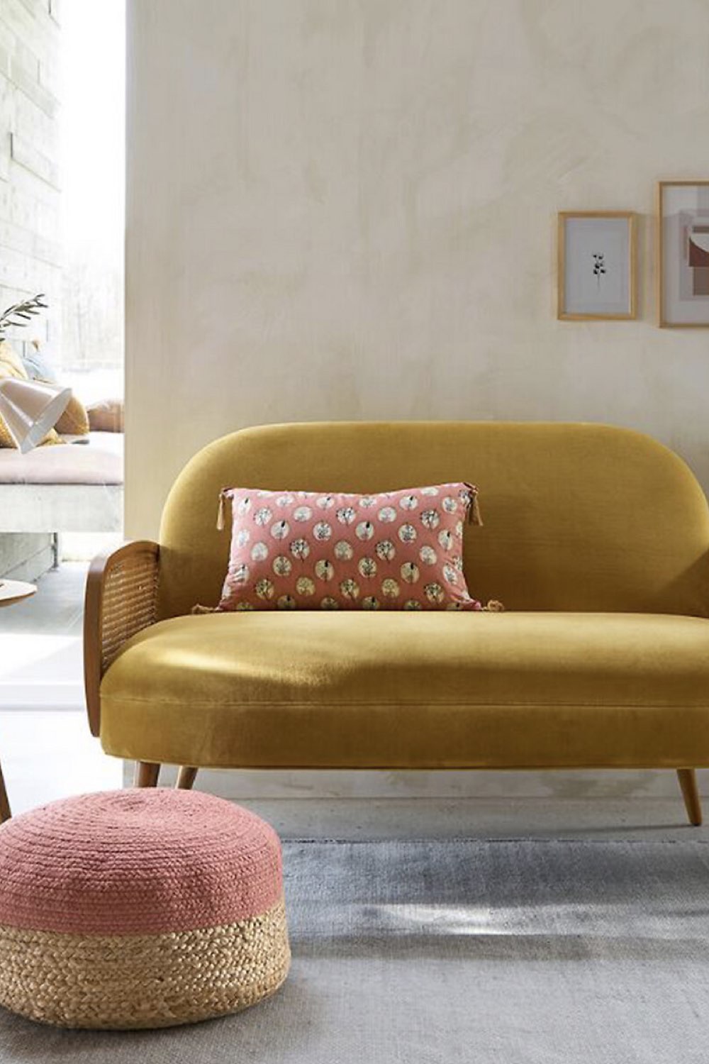 - Un canapé jaune ocre s'inscrit dans la même dynamique que le jaune moutarde. Une couleur organique, chaleureuse et élégante.