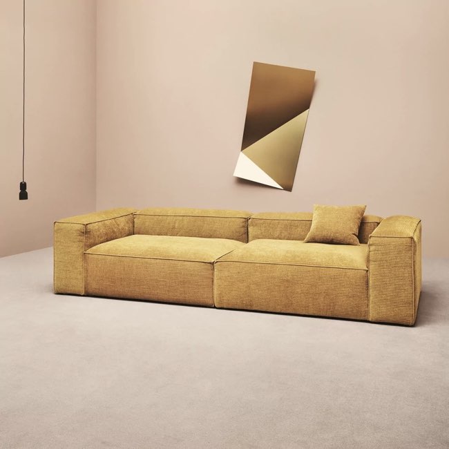 J'aime l'idée d'apporter de la couleur dans le salon autrement que par le revêtement mural. Pas besoin de savoir bricoler, pas besoin de demander l'autorisation quand on est locataire. Choisir un canapé coloré permet de mettre en valeur l'idée de convivialité dans votre pièce à vivre et colorer l'espace. J'ai déjà eu l'occasion de vous proposer une sélection de canapés verts, une autre pour les canapés roses. Cette fois, c'est le jaune qui m'intéresse.