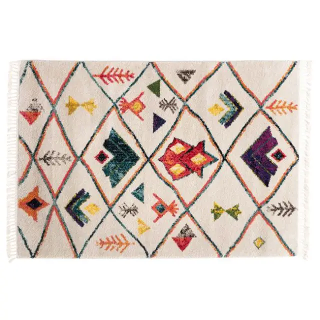 - Tapis motif berbère multicolore avec pompons blancs - Miliboo