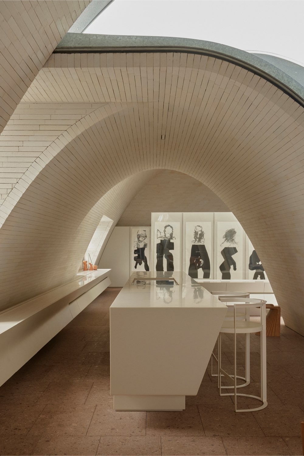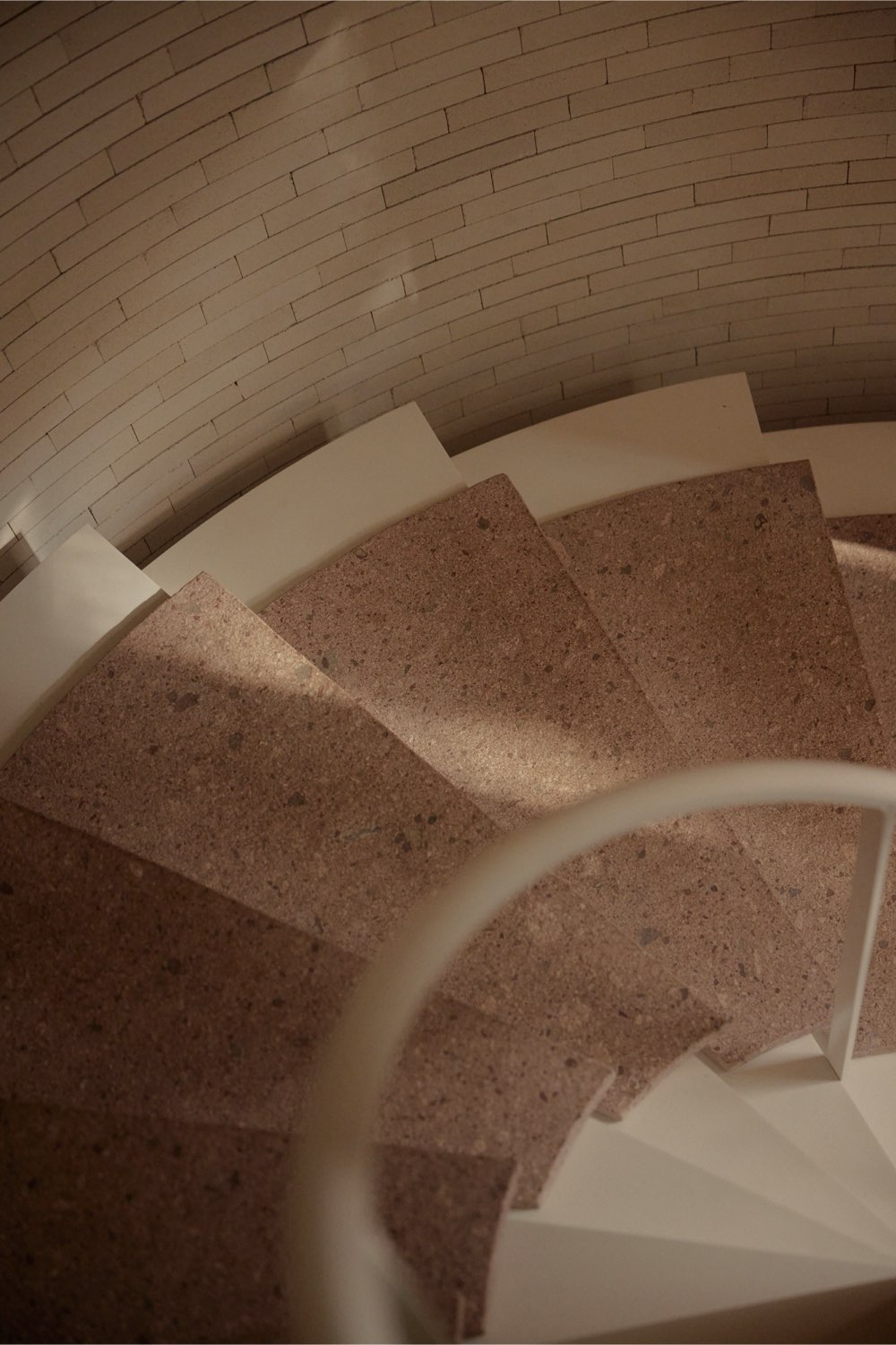 Je serai incapable de vous dire si je m'imagine un jour vivre et apprécier de vivre dans un intérieur comme celui-ci. C'est plus nuancé. Il y a un parti-prix terriblement minimaliste qui est équilibré par la géométrie des espaces. Les courbes des murs et des plafonds, l'enchevêtrement d'espaces, les jeux d'ombre et de lumière, la disparition visuelle de certaines cloisons extérieures...