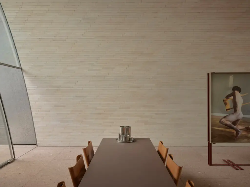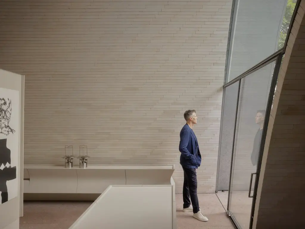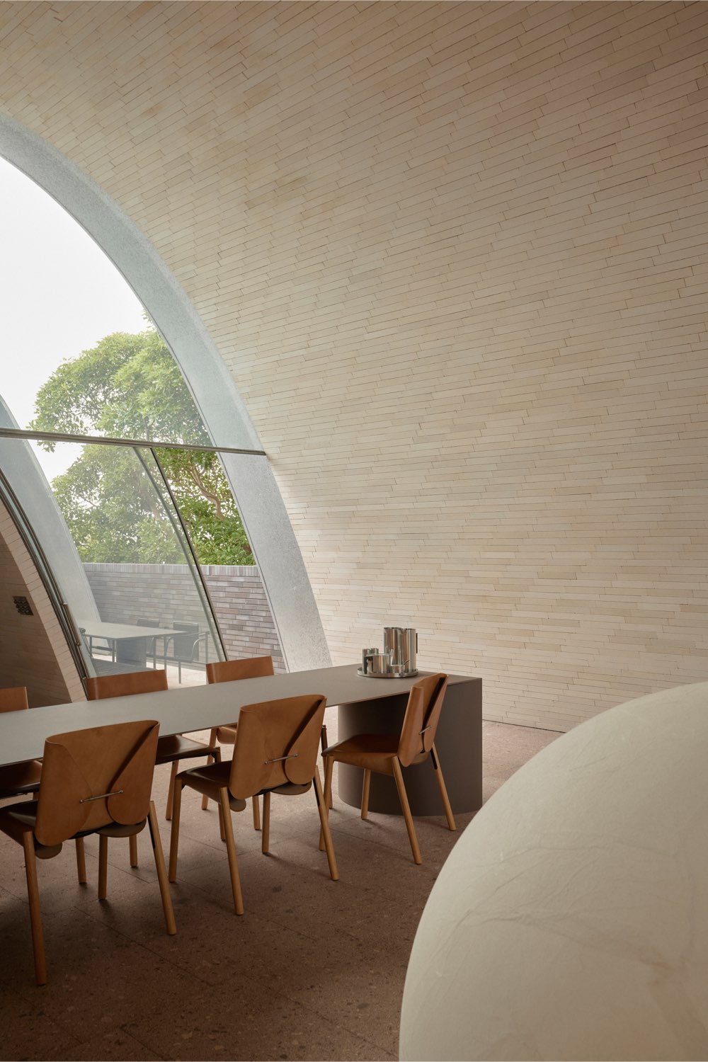 L'intérieur est différent. La palette de couleurs et de matériaux est toujours neutre mais dans des nuances de beige et de blanc. Les ouvertures sur l'extérieur sont nombreuses et tendent à faire découvrir la ville avec un autre regard. Elles permettent de voir les arbres et le ciel et non pas les immeubles et parkings.