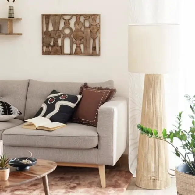 Dans un salon décoré dans le style nature, les matériaux naturel comme le bois, le rotin, le bambou (et j'en passe) ont tout à fait du sens. si votre choix part sur une lampe avec un abat-jour, le textile de ce dernier peut également être naturel comme le lin. Si votre pièce de vie est plus minimale et épurée, dans des tons neutre, votre nouveau luminaire peut être noir avec un design contemporain.