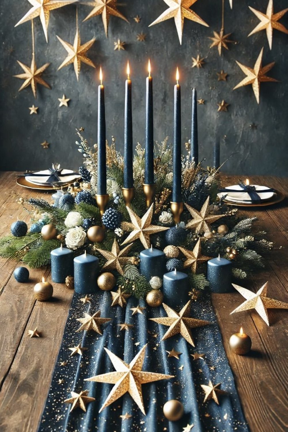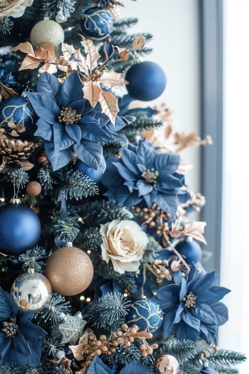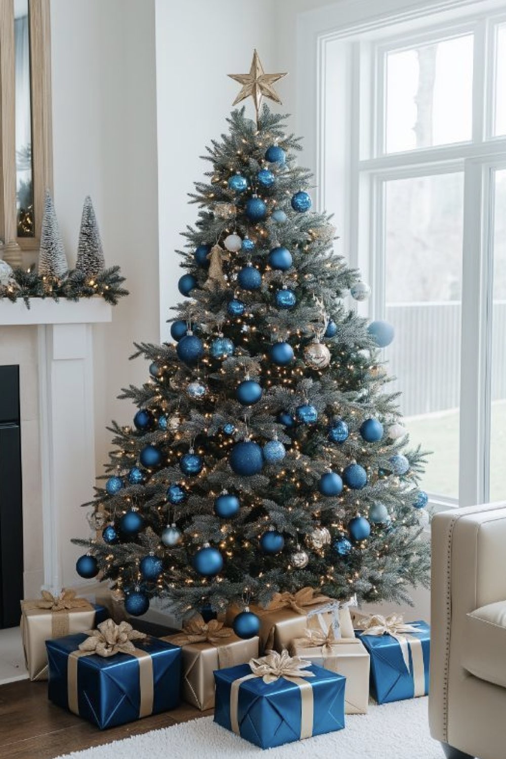 Pour parfaire la magie de noël, le bleu s'associe très facilement avec le doré ou l'argenté qui sont des couleurs festives par excellence. On peut aussi partir aussi sur un mariage de déco bleues et blanches. N'ayez pas peur d'avoir un effet bord de mer, c'est peu probable. Les décorations de noël chassent vite cette idée.