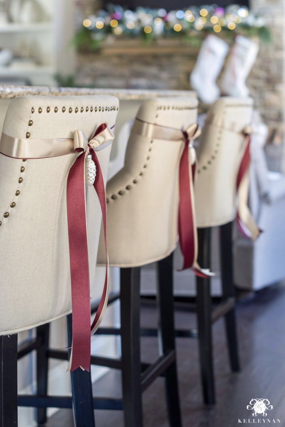 - Décorer le dossier des chaises autour de la table avec un noeud en ruban;
