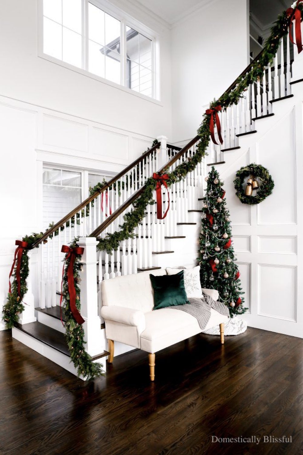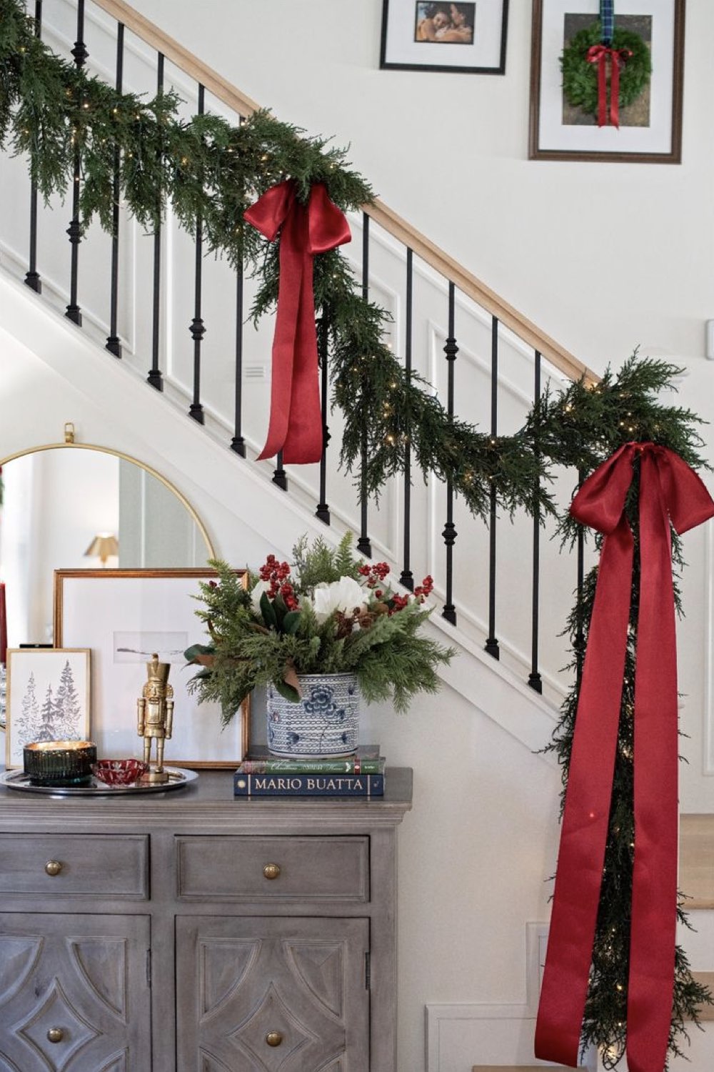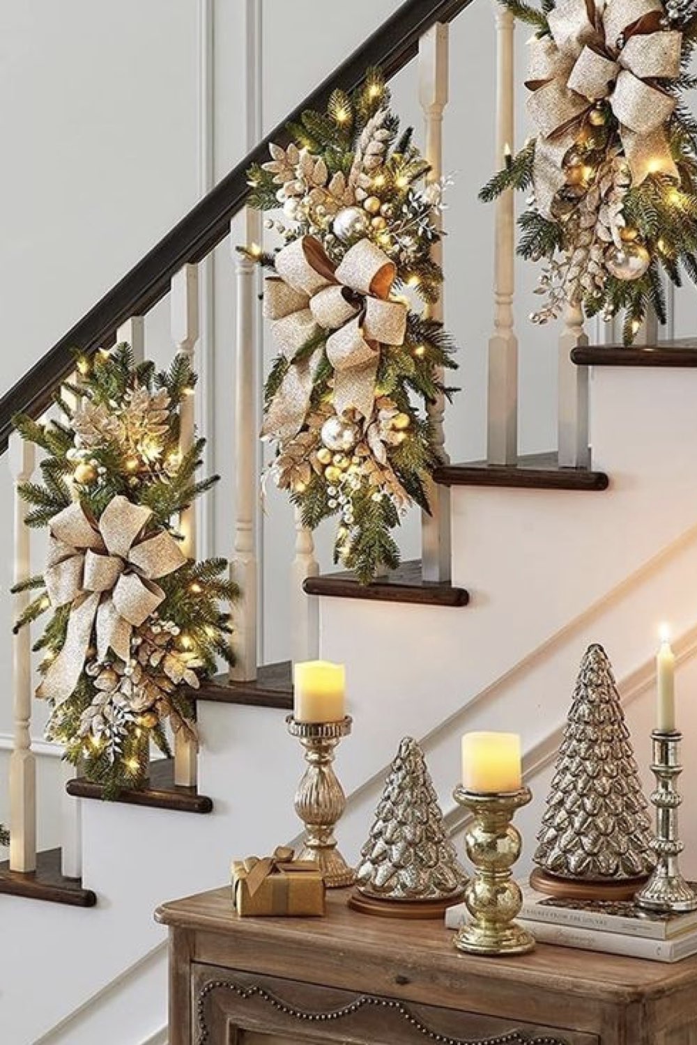 - Décorer la rampe d'escalier avec des branches de sapin et des jolis rubans...
