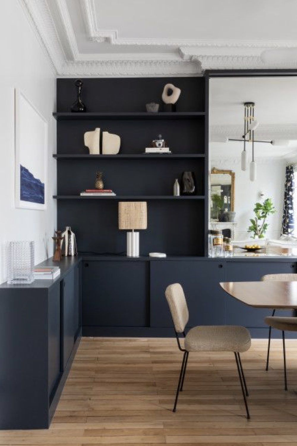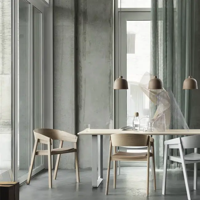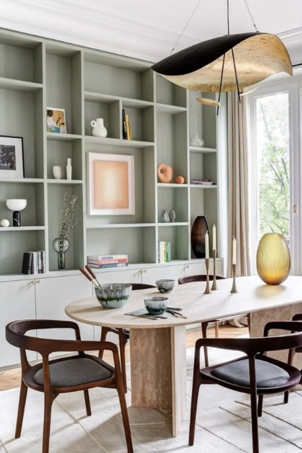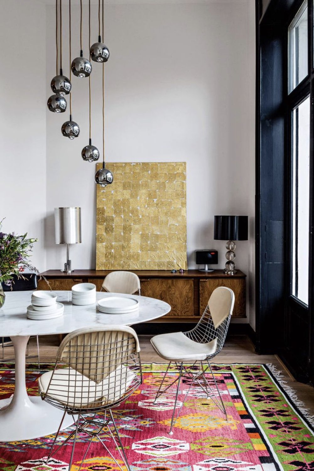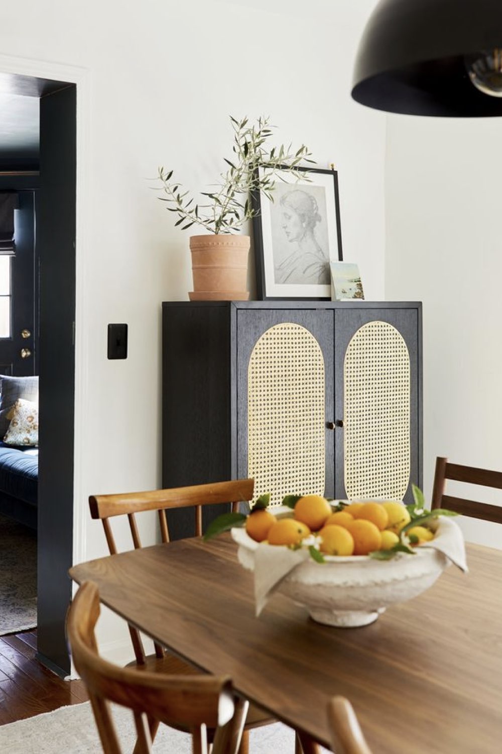 Plus discret que le bois mais assez facilement trouvable dans la salle à manger: le métal noir. Pieds de chaises, piètement de table, meubles ou encore luminaires. Il y a un vaste choix. Le noir comme couleur dominante n'est pas fait pour tout le monde (même pour moi, ça pourrait être too much). En revanche, le noir comme couleur accent vous permettra de souligner certains détails de votre décor. C'est un procédé que l'on voit fréquemment dans les intérieurs Japandi par exemple.