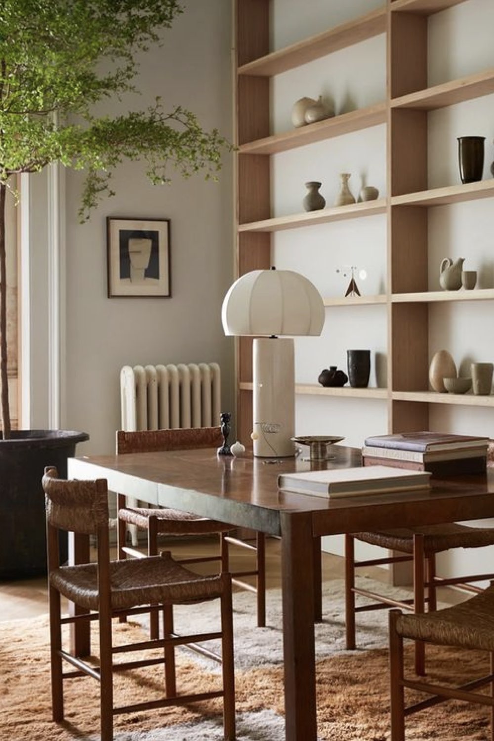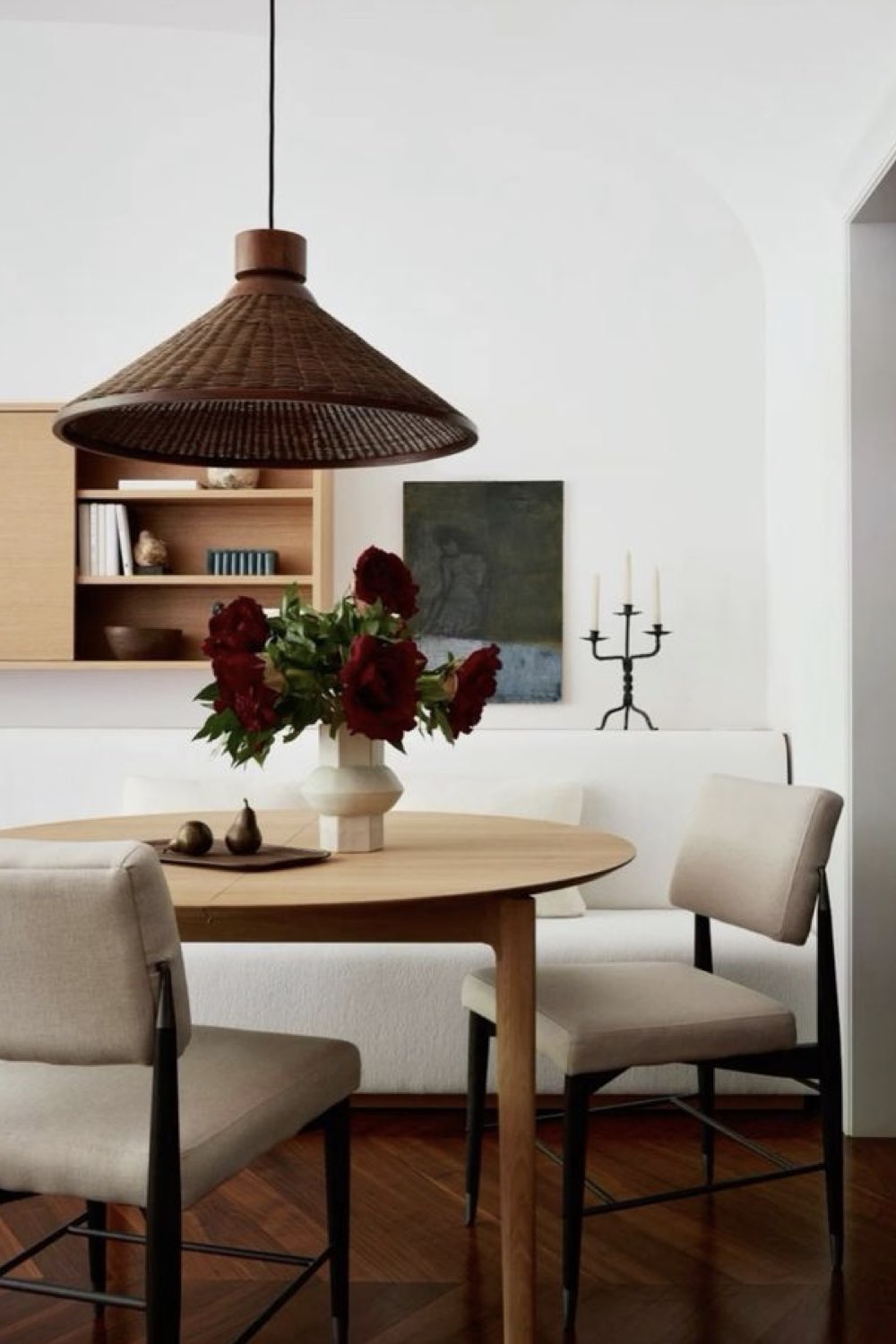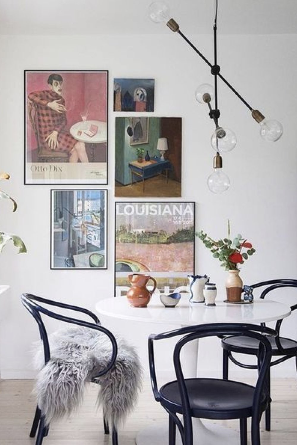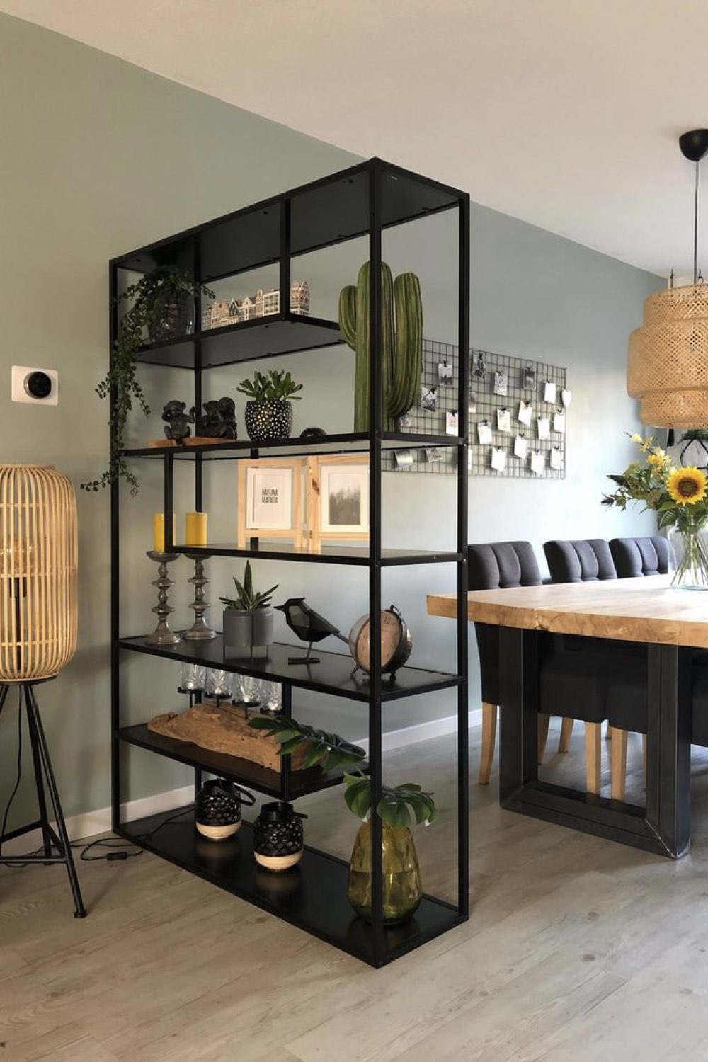 Plus discret que le bois mais assez facilement trouvable dans la salle à manger: le métal noir. Pieds de chaises, piètement de table, meubles ou encore luminaires. Il y a un vaste choix. Le noir comme couleur dominante n'est pas fait pour tout le monde (même pour moi, ça pourrait être too much). En revanche, le noir comme couleur accent vous permettra de souligner certains détails de votre décor. C'est un procédé que l'on voit fréquemment dans les intérieurs Japandi par exemple.