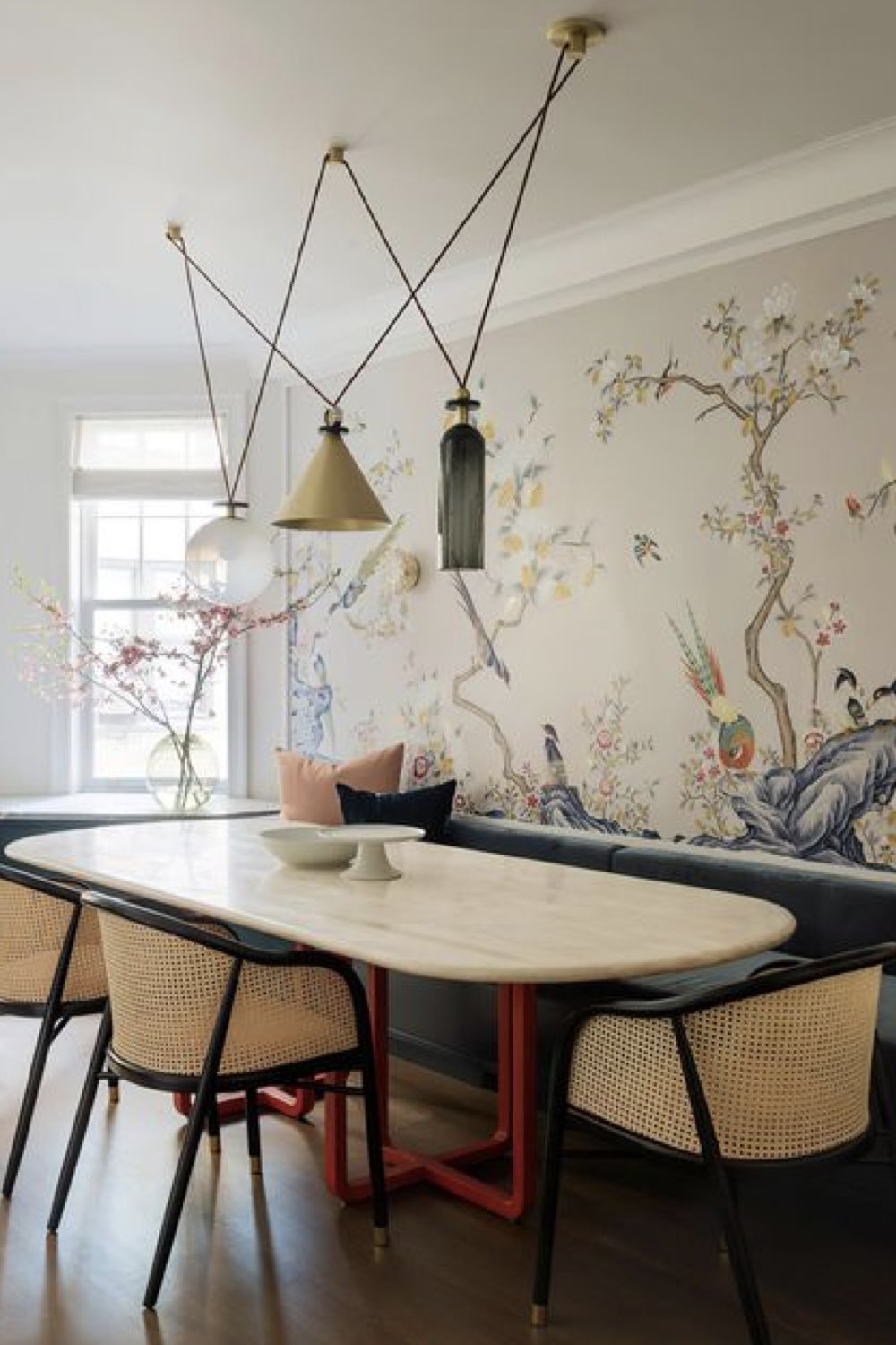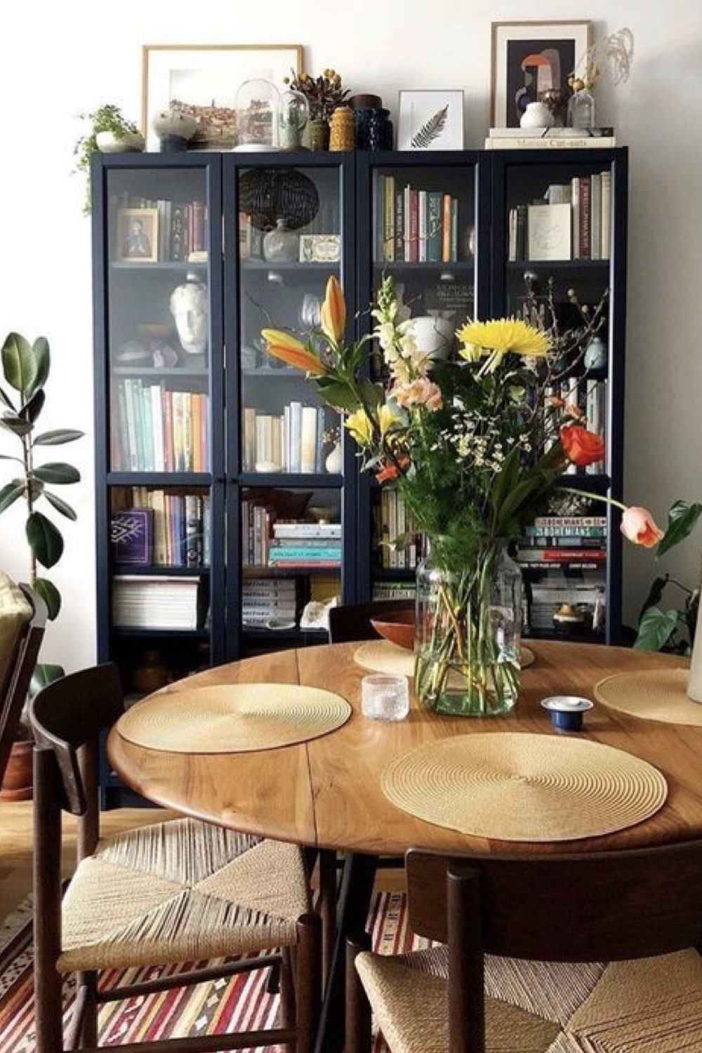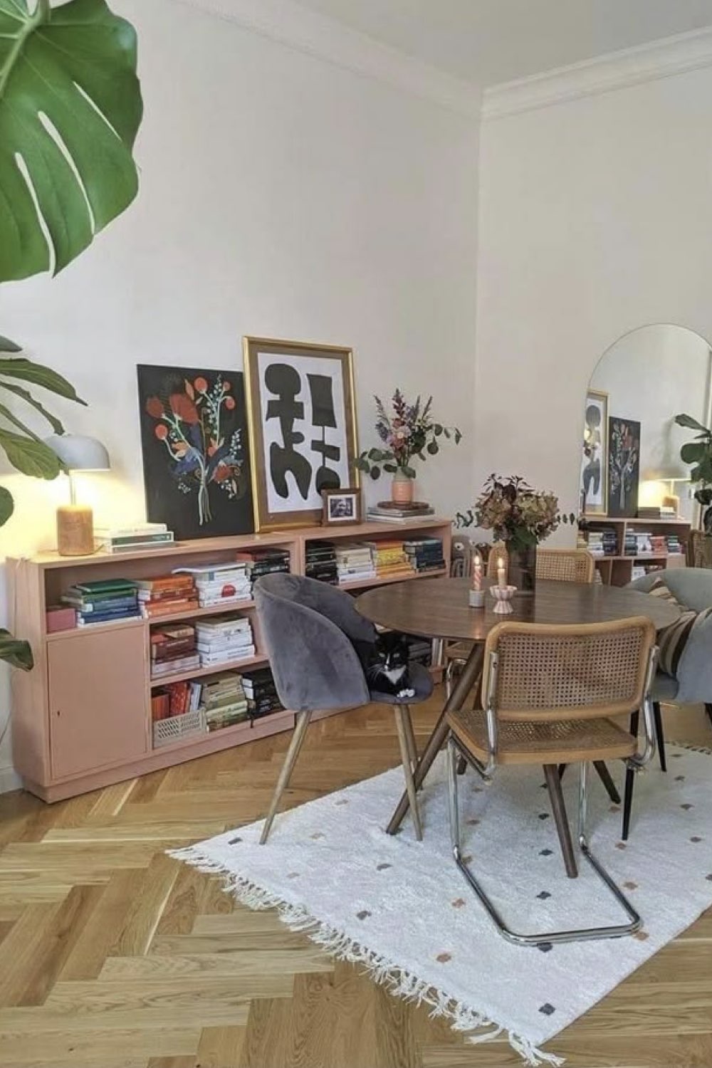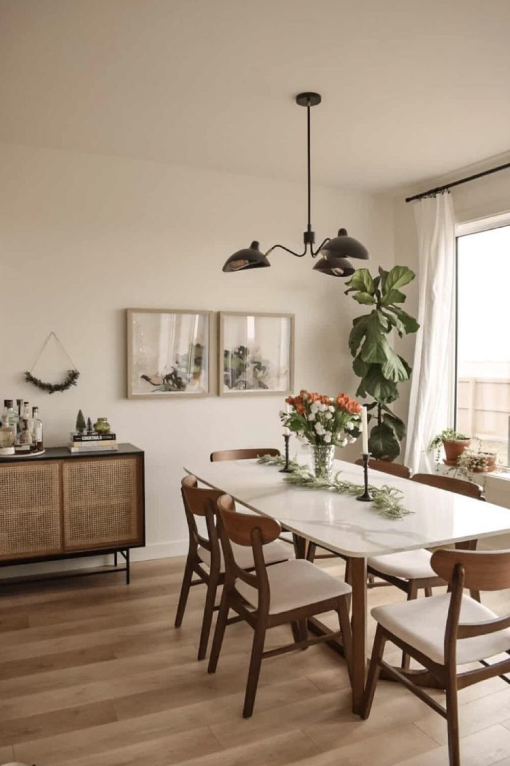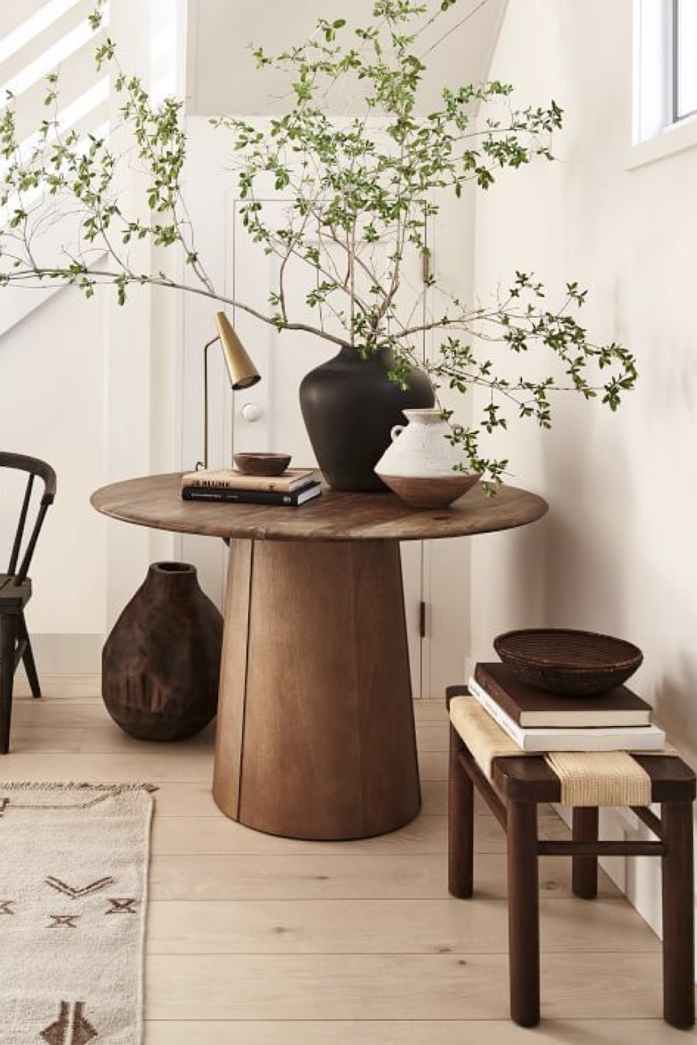 Plus discret que le bois mais assez facilement trouvable dans la salle à manger: le métal noir. Pieds de chaises, piètement de table, meubles ou encore luminaires. Il y a un vaste choix. Le noir comme couleur dominante n'est pas fait pour tout le monde (même pour moi, ça pourrait être too much). En revanche, le noir comme couleur accent vous permettra de souligner certains détails de votre décor. C'est un procédé que l'on voit fréquemment dans les intérieurs Japandi par exemple.