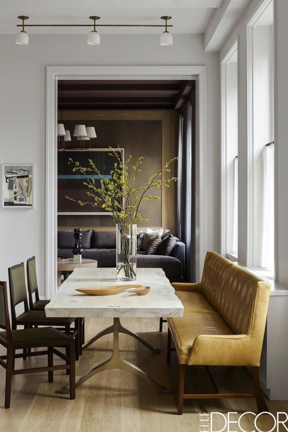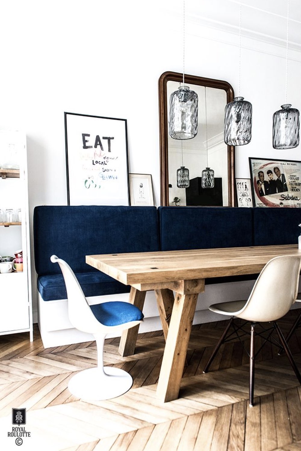 J'ai déjà évoqué la banquette mais c'est un élément qui est bien trop souvent oublié et qui vous fera gagner de la place - notamment celle du recul de la chaise. La banquette déplace la table dans la pièce. La table n'est plus au centre mais elle est plus proche d'un mur. Cela peut-être intéressant dans une pièce en couloir où vous n'avez pas la place pour circuler si la table est au milieu. La banquette est un choix intéressant quand la salle à manger est dans un espace de vie ouvert (salle à manger / cuisine ou encore salle à manger / salon).
