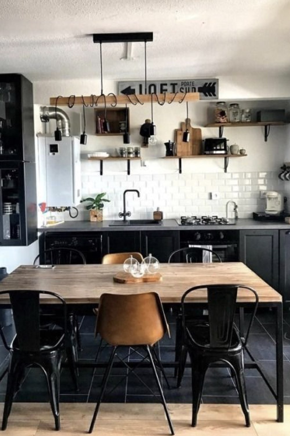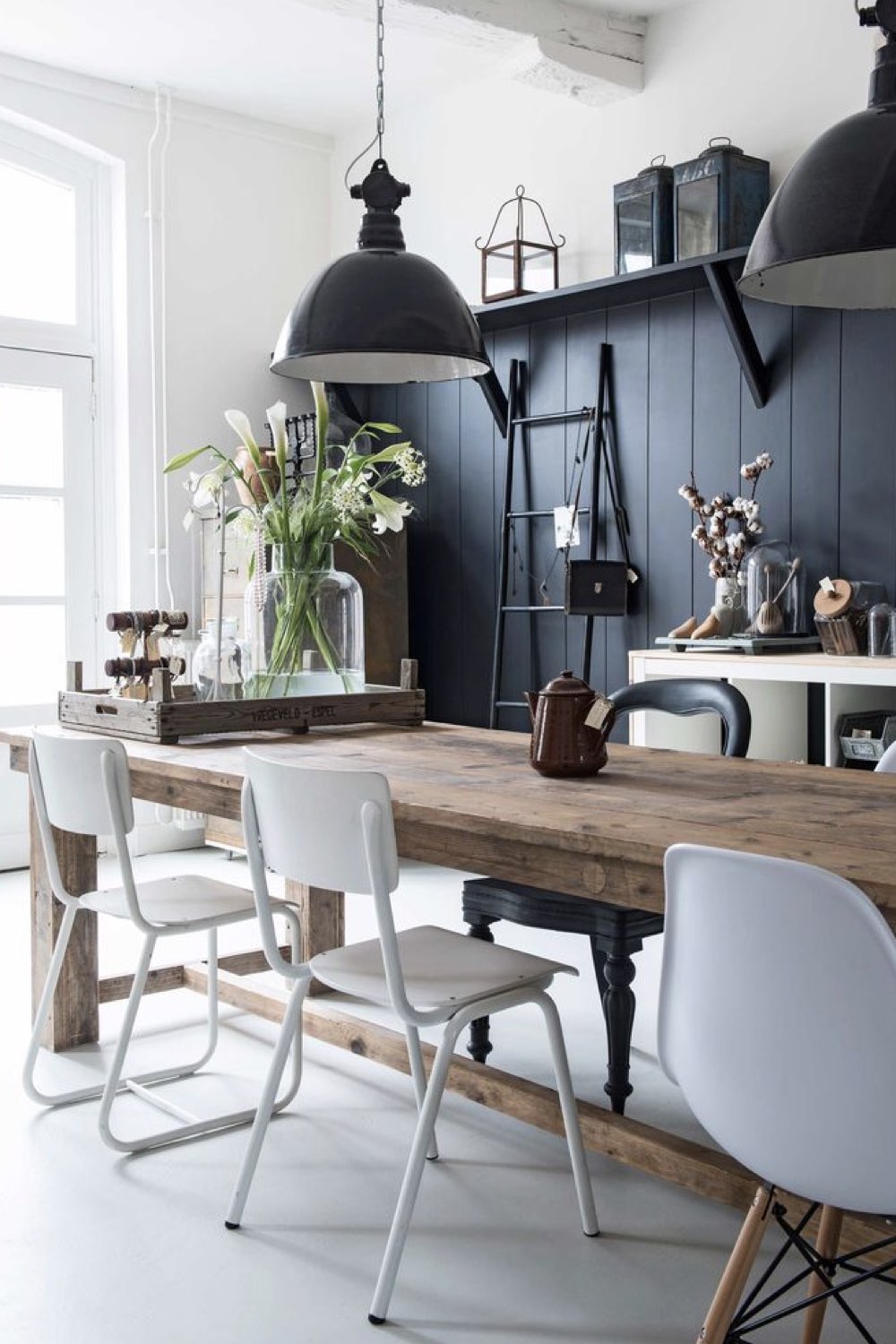 Le style industriel qu'il soit chic ou plus authentique est un genre d'ambiance qui ne fluctue pas selon les tendances qui vont et qui viennent. D'ailleurs, la salle à manger est peut-être la pièce où se style convient parfaitement. C'est un style très codé avec le charme de l'ancien. On va trouver: