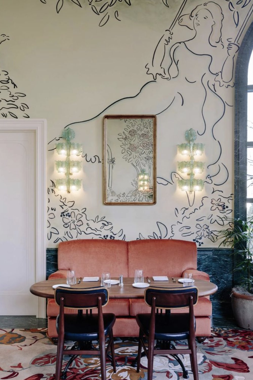 A peu près dans le même esprit que le papier peint il y a les fresques et décors panoramiques. Ils vont couvrir un mur entier. J'aime ce type de décor mural parce qu'ils me font penser à la création d'une histoire dans la pièce. Ce n'est pas uniquement une accumulation de motifs imprimés mais un décor à part entière.