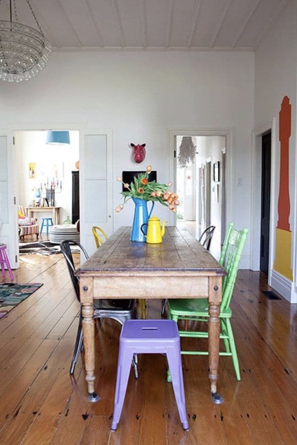 Des chaises dépareillées pour une salle à manger éclectique