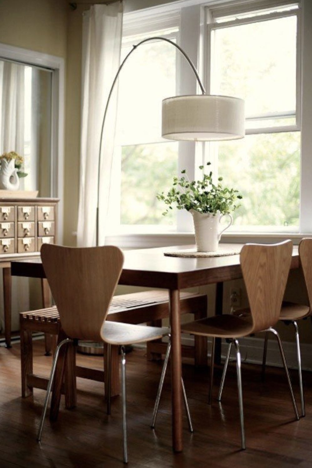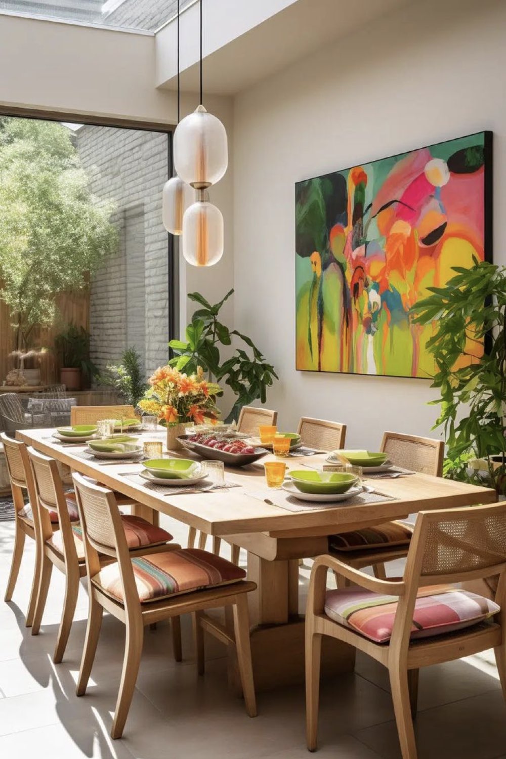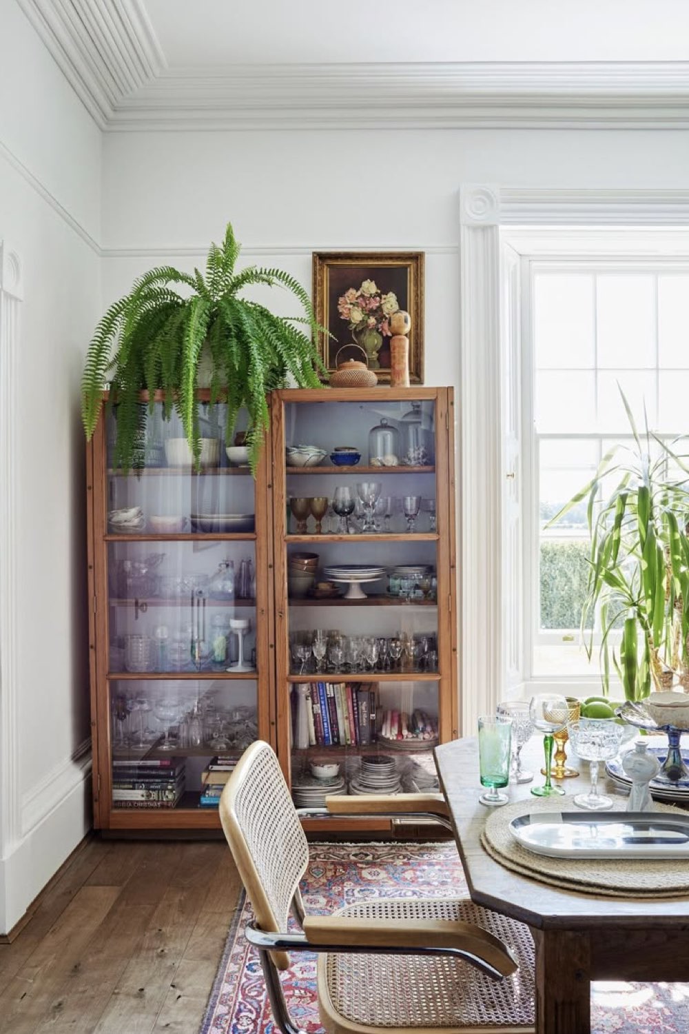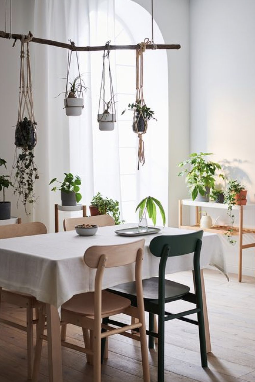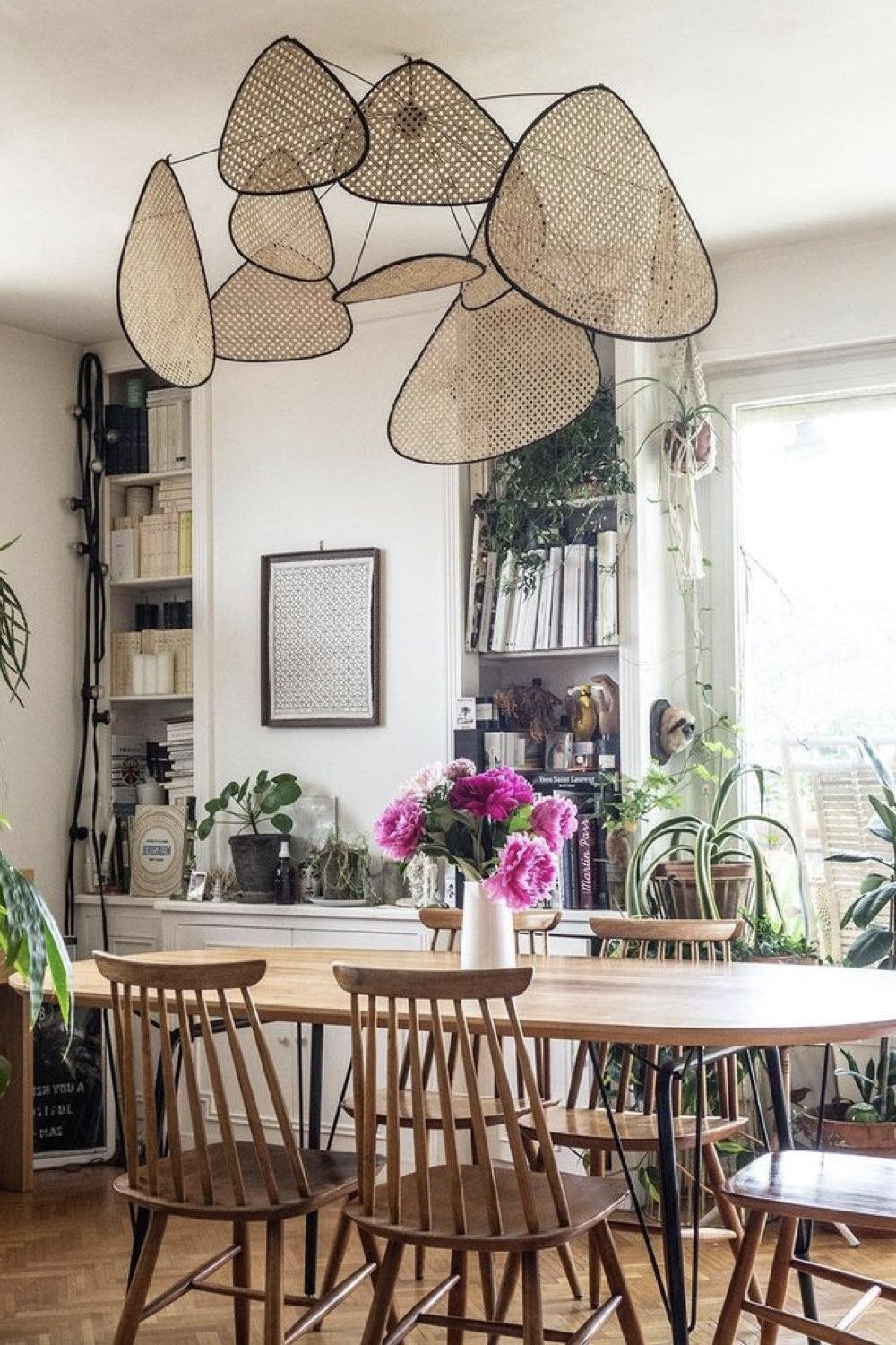 Troisième style assez intemporel pour la salle à manger: le style nature. Il fluctue un peu plus selon les tendances. Les teintes de verts, les plantes, les imprimés floraux et végétaux sont plus sujets aux tendances. Mais globalement, du bois, des couleurs neutres, des références à la nature composent ce style. C'est un type d'ambiance que j'aime beaucoup parce qu'il peut être simple et chic à la fois. Il n'y a pas besoin d'en faire des tonnes pour faire entrer l'idée de nature chez soi.