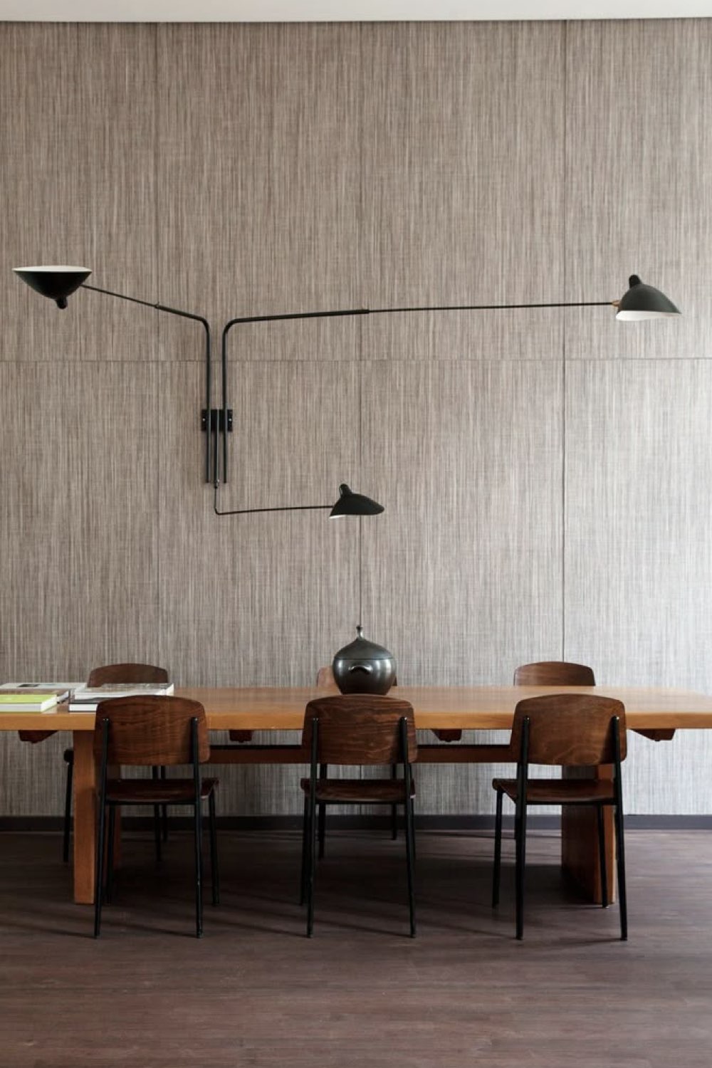 J'aime particulièrement les appliques design assez épurées avec des bras orientables. Je trouve qu'elles apportent une touche graphique et inattendue à la salle à manger. Un classique dans les luminaires muraux, ce sont les appliques de style industriel qui sont souvent plusieurs. On peut penser aux appliques bohème et nature en fibres naturelles ou encore des appliques sobres qui vont avant tout mettre en lumière un tableau (comme on le ferait dans une galerie d'art).