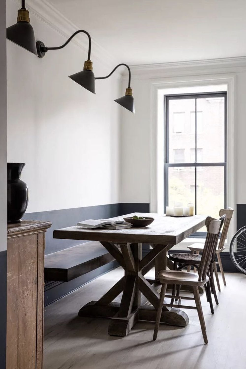 Duo de couleurs pour la salle à manger en créant un soubassement
